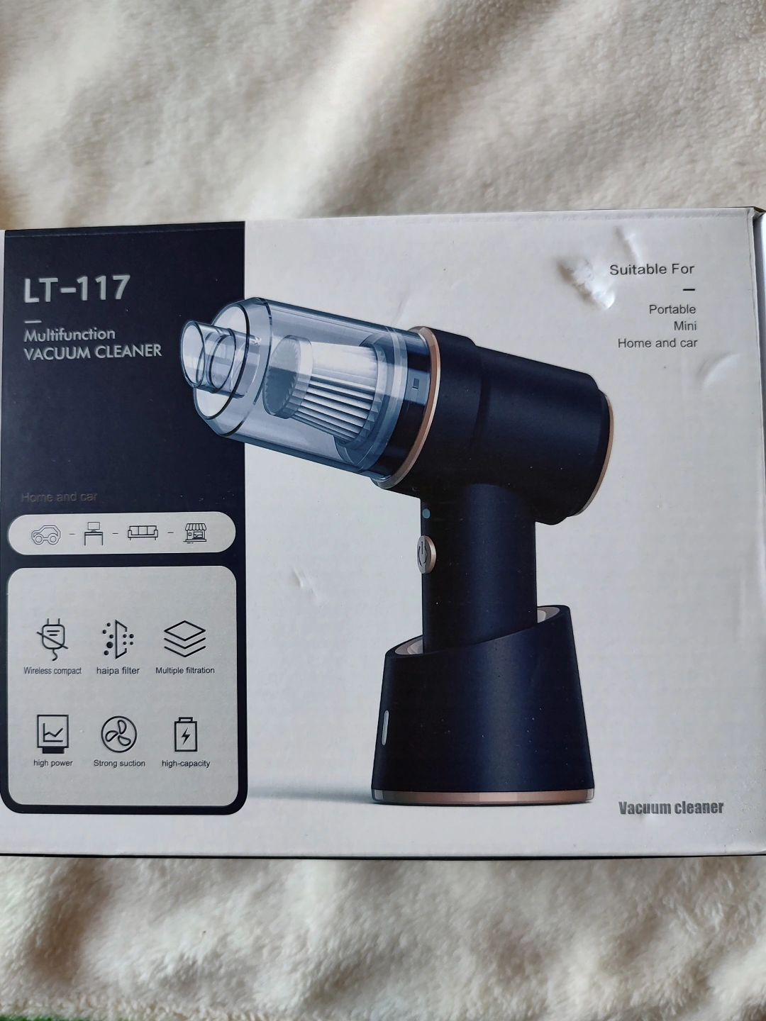 LT-117 multifunction blue vacuum cleaner. 7x6". used once only to test, then cleaned. Has all parts, as shown. Selling as duplicate gift. Good for home and car