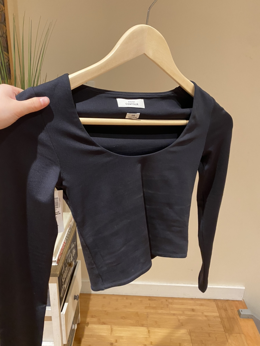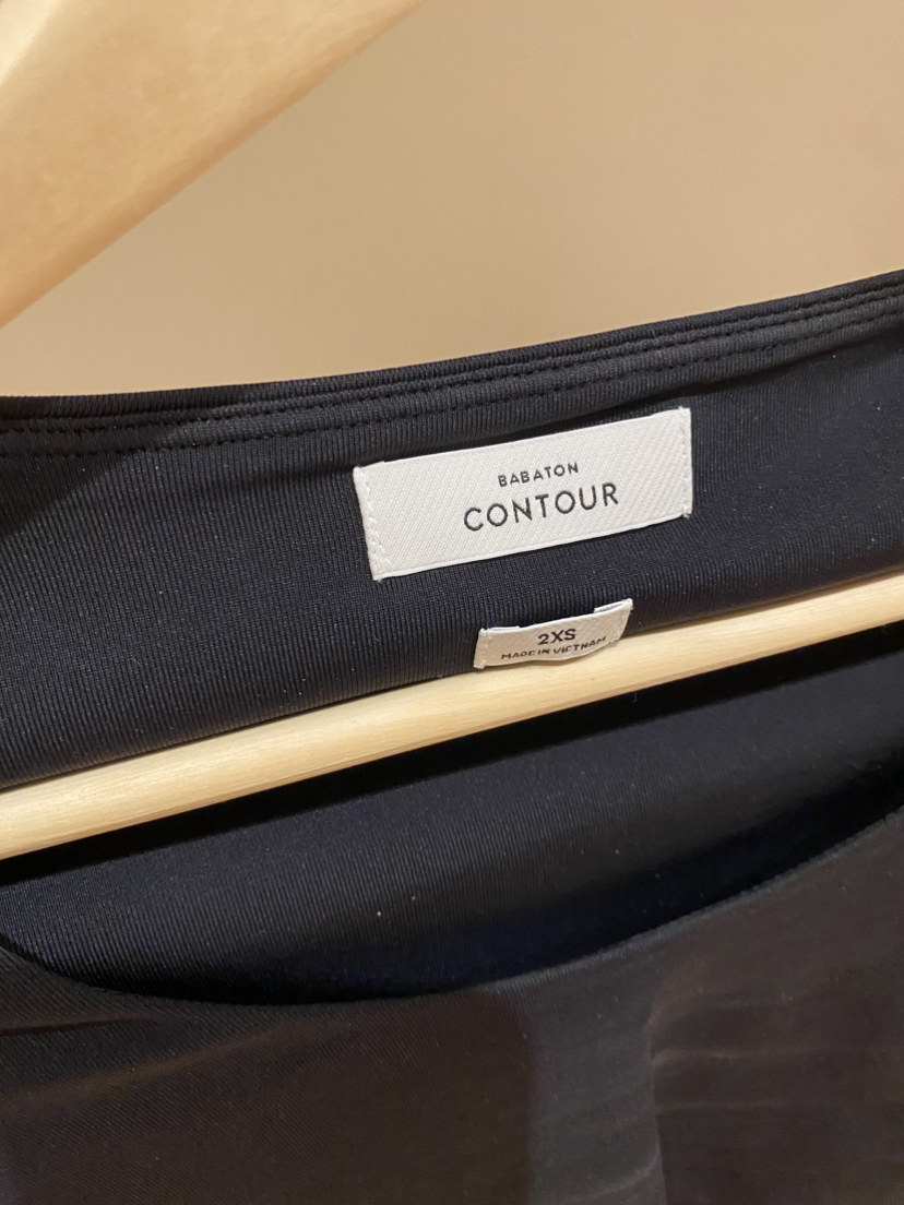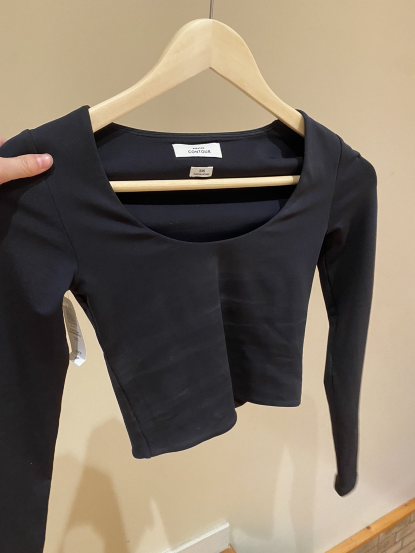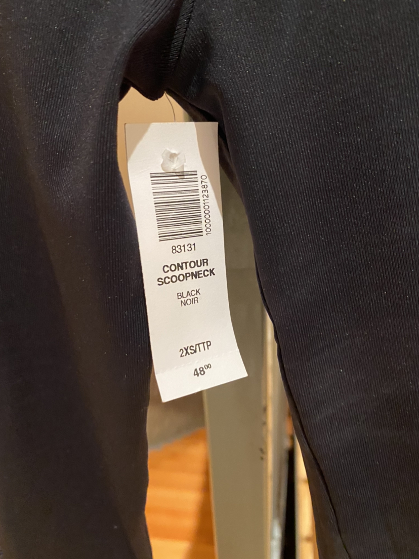 Aritzia Babaton black contour scoop neck Size:xxs No damage New with tags Selling:$42 Retails:$48+tax Bought this online so it came with a few minor deodorant stains that come out in the wash, however since it’s still nwt I haven’t washed them out yet