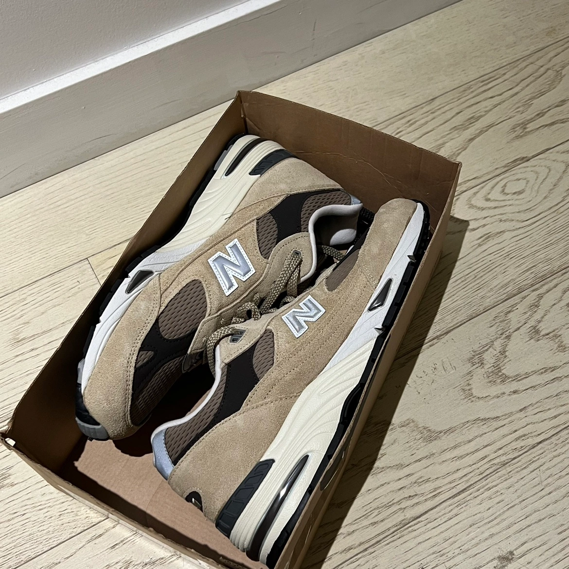 Brand New with Tag • US 12 (Fit US 11) Shoe box is damaged This special-edition design celebrates the iconic original MADE in UK 991, with an array of rich materials and fine details. A luxurious twist on the standard mesh construction utilizes debossed, perforated nubuck, which mimics the appearance of the classic upper design. Premium suede overlays are paired with contrasting synthetic accents. The MADE in UK 991v1 'Finale' is offered in two colorways, one featuring dark brown overlays and the other in a lighter tan shade. Features Classic ABZORB midsole Embroidered tongue Reflective accents '991' branding at heel 427.3 grams (15.1 oz) Material Debossed, perforated nubuck upper Premium suede and synthetic overlays