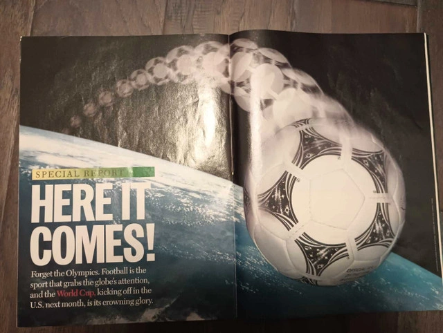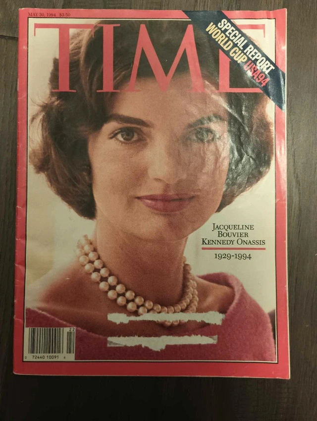 151994 Life Magazine - with special on John F Kennedy's wife - Jacqueline and the 1994 Soccer World Cup (USA94). Measures 11in x 8in. Good condition - with some wear to the edges. Pick up near Banwell and the Expressway.