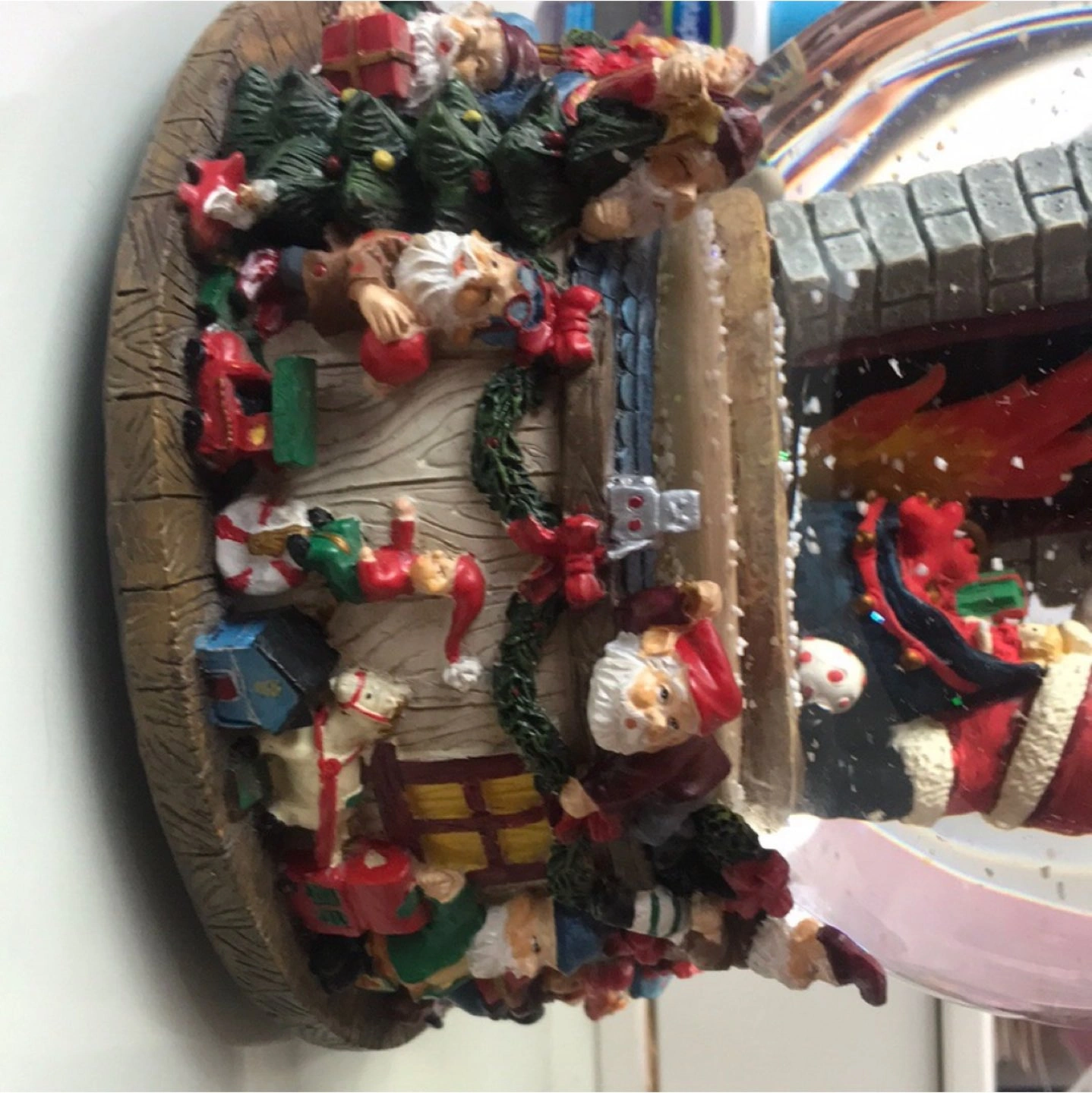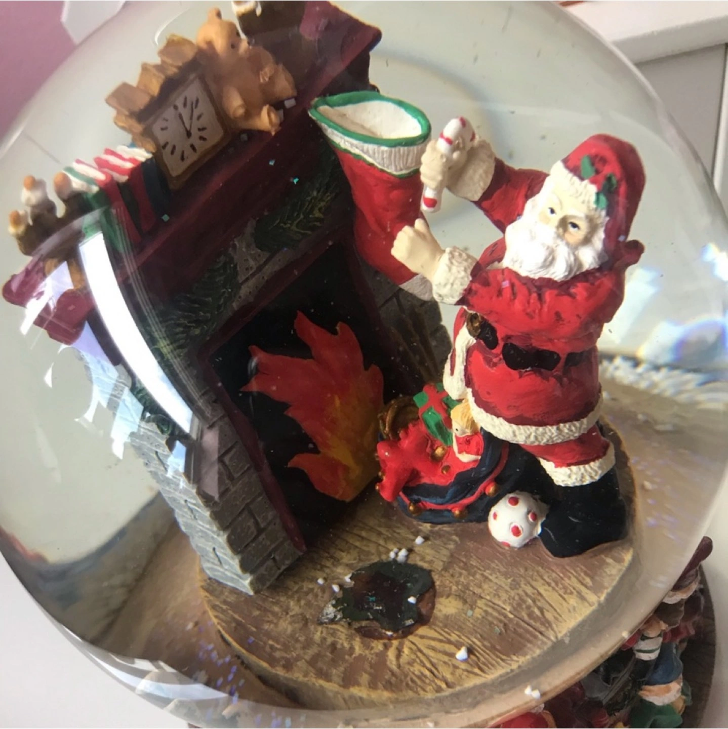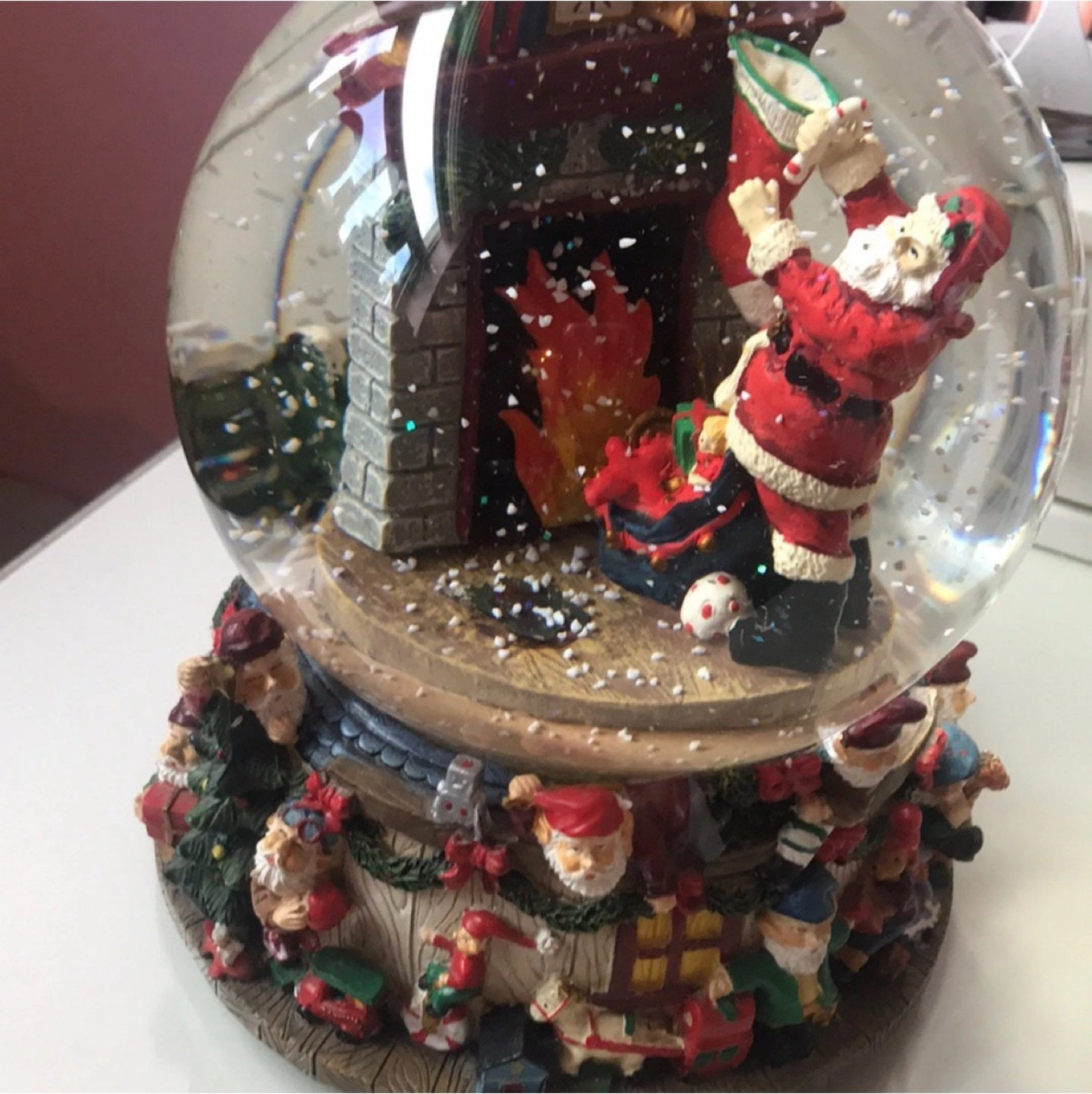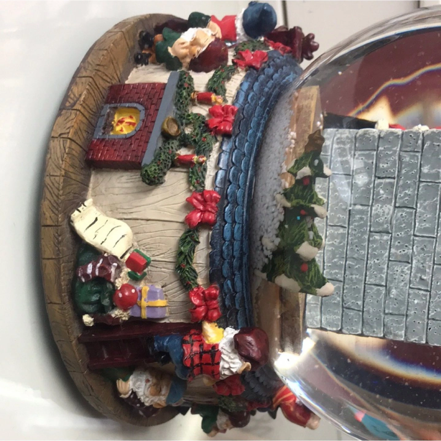 Vintage Christmas 1989 wind up glass snow globe that plays the song “Santa Claus is coming to town”. In perfect condition. About 6 1/2 inches in diameter.