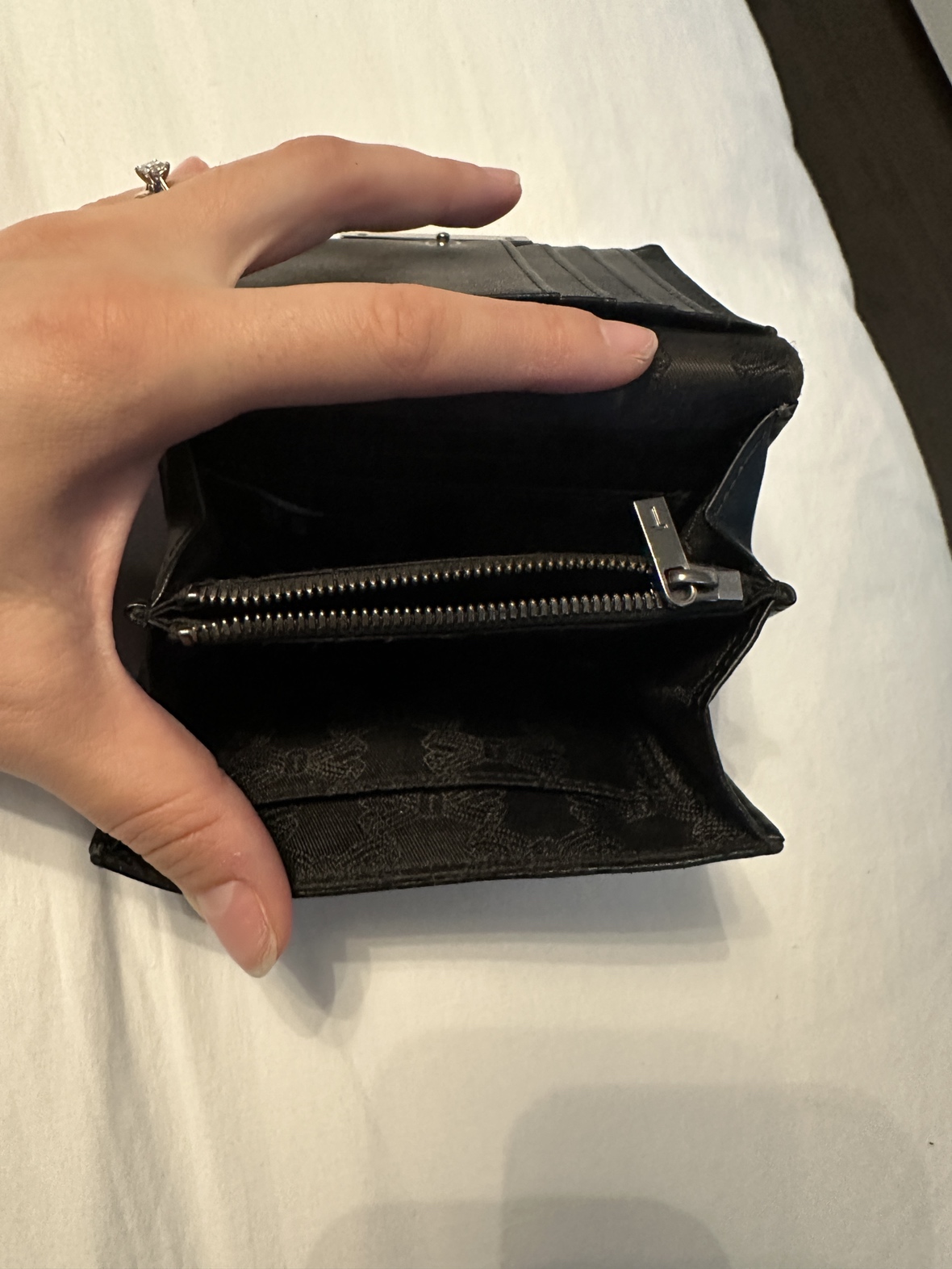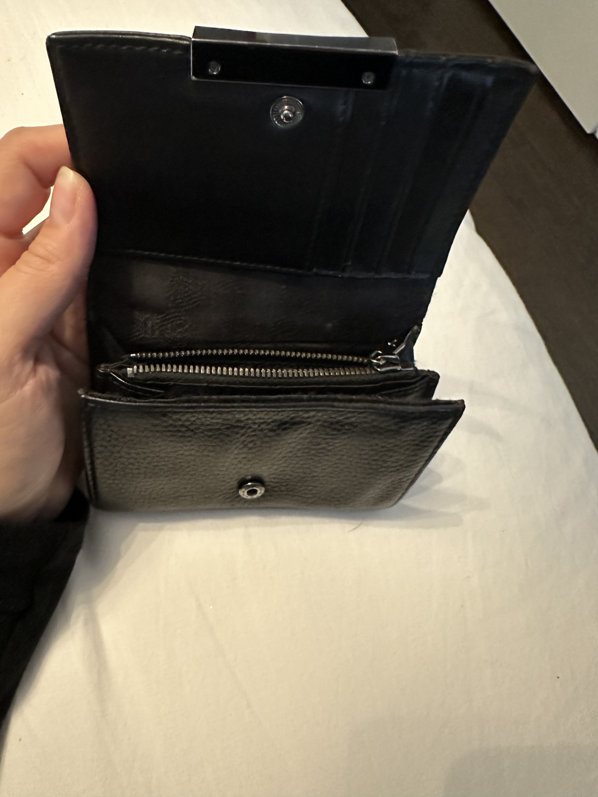 Authentic Very good condition. 6 card slots 6 pockets 1 zippered pocket Black leather