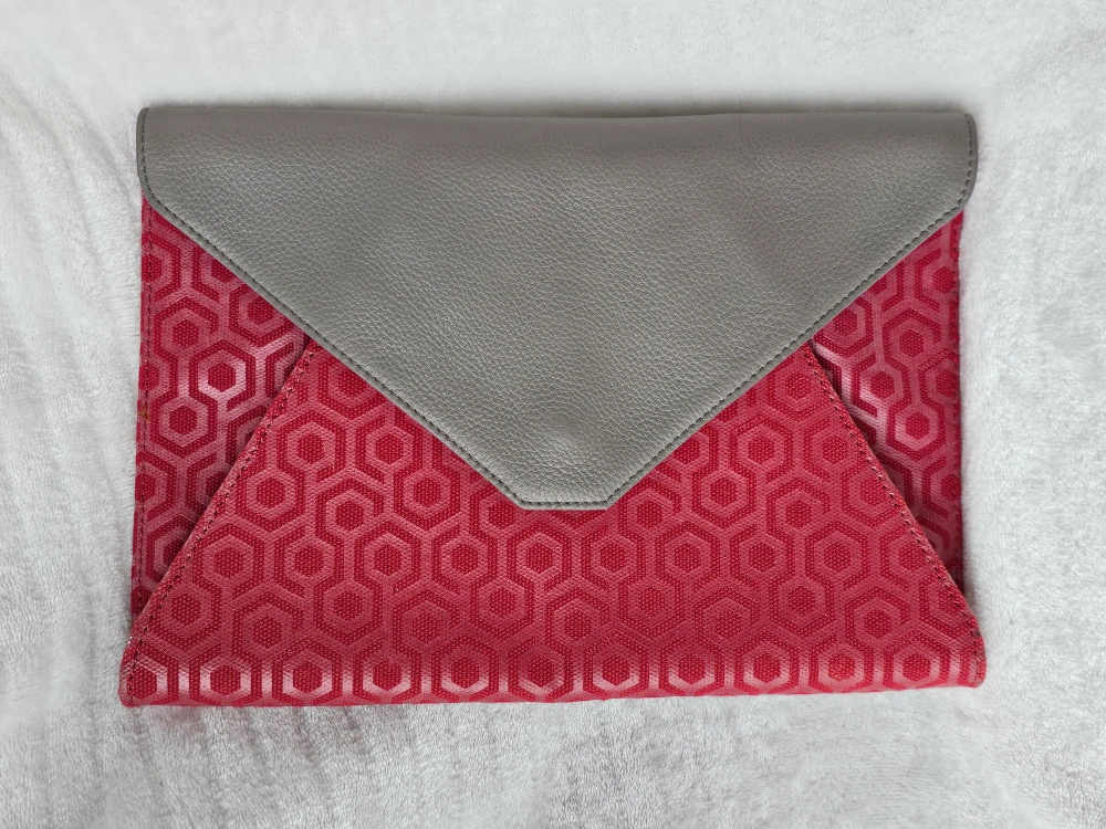 This beautiful 8" x 11" red tablet case with gray faux leather flap and geometric detailed print is perfect for school or work 😍 👌 It also features 8 card slots inside for extra convenience!