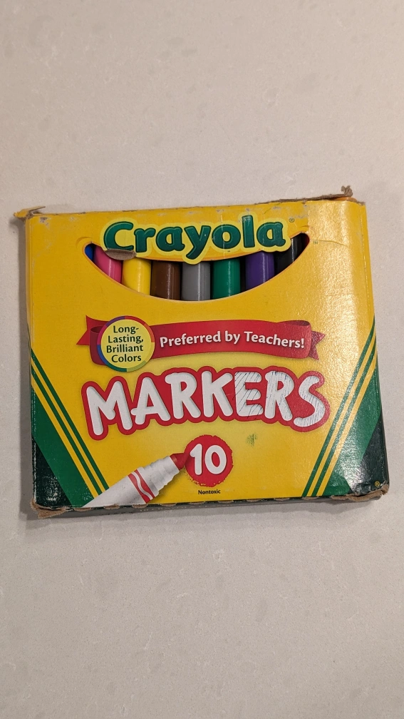 Have not been used, just kept stored for around a year. Markers have been tested and are not dried up. Giving away as I am in the long process of decluttering.