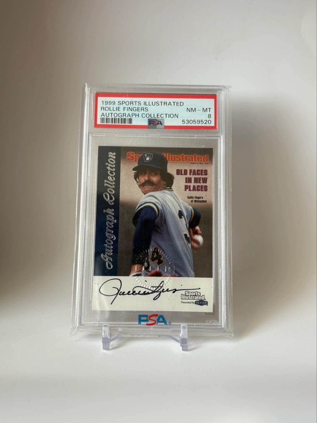 PSA graded 1999 Sports Illustrated autograph collection card. Features Rollie Fingers autograph. Near Mint-Mint condition.