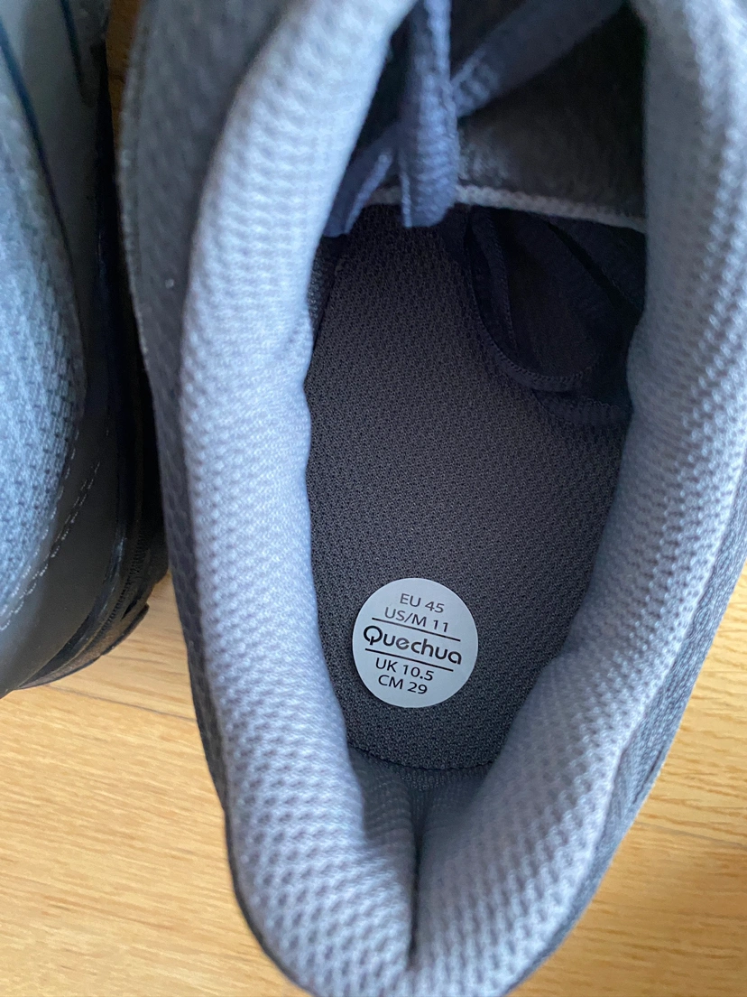 Quechua Arpenaz 50 hiking/walking shoes. They're brand new and extremely light. I bought them to travel with on a trip with a lot of walking that ended up not happening.