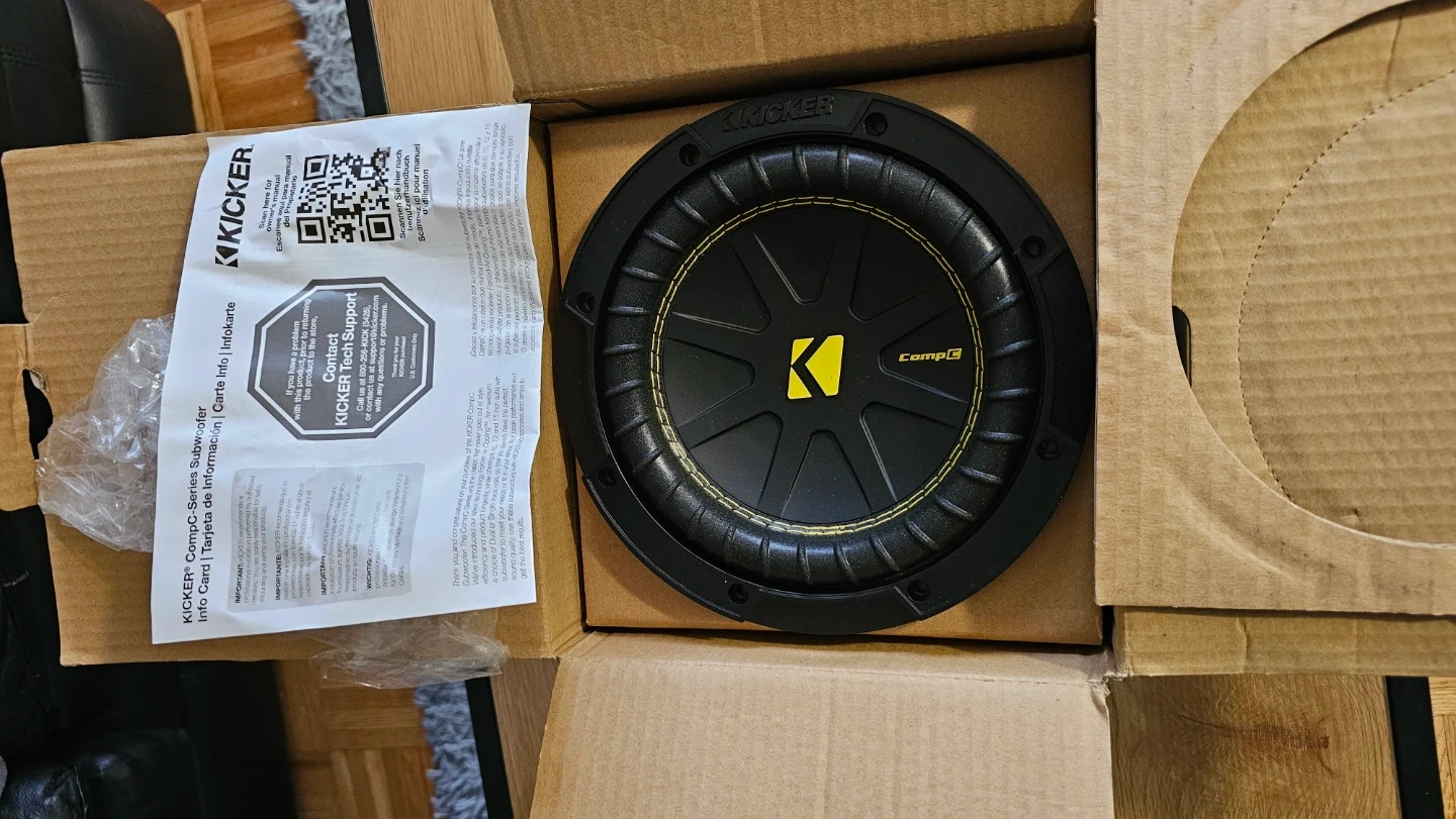 Selling a Kicker CompC CWC8 8" subwoofer. It's in new condition and comes in the original box. This subwoofer has a peak power of 400W and RMS of 200W. Get ready to upgrade your car audio!