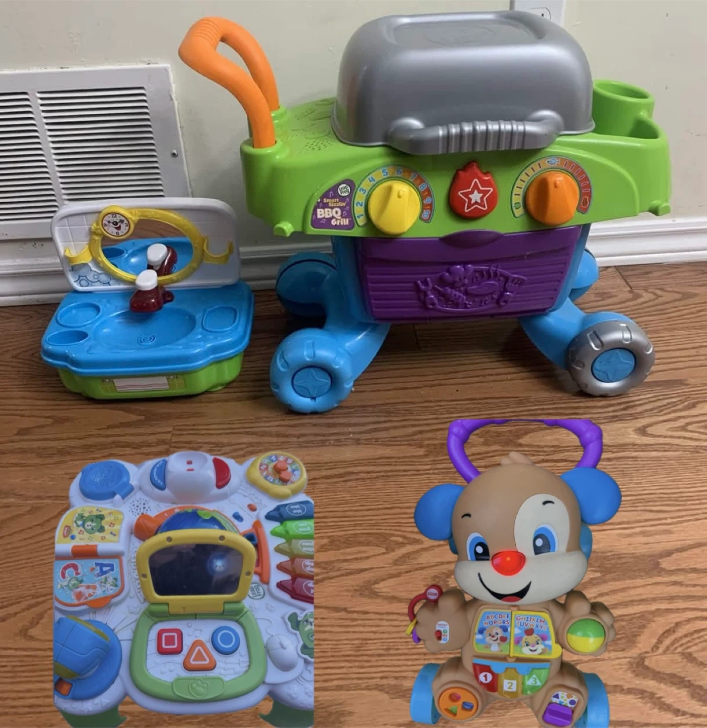 These toys have batteries that light up the buttons, screens and plays interactive sounds when buttons are pressed