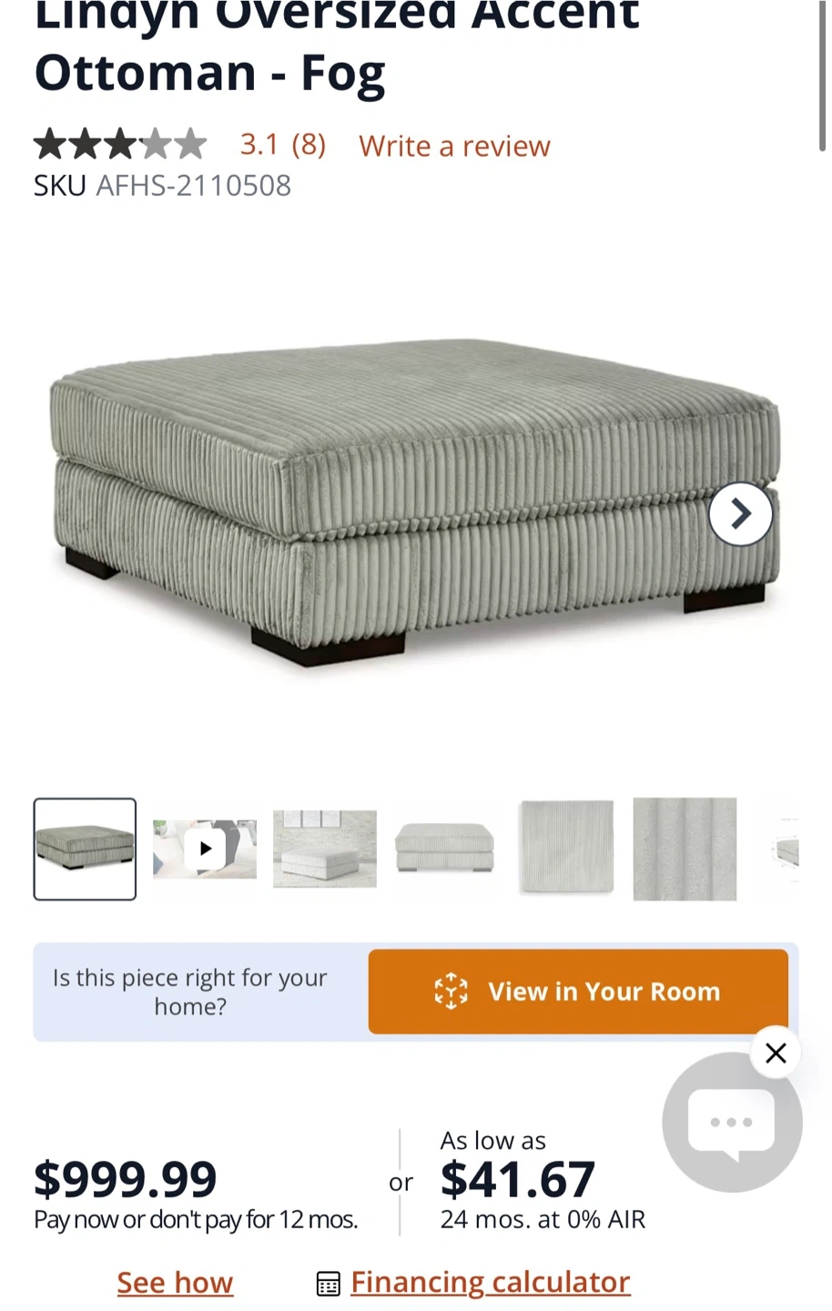Lindyn Oversized Accent Ottoman - Fog