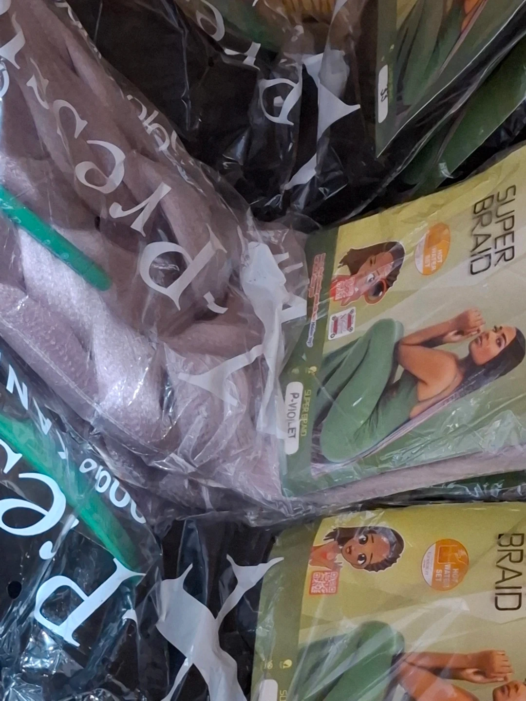 This is SUPER BRAID hair extensions available in P-Violet colour, colour 1(black) and colour 33(brown). It's designed for hot water setting and comes in a pack.