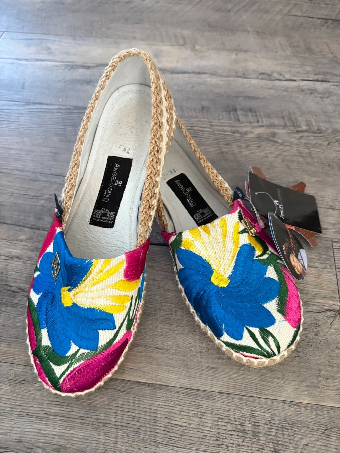 Buy & SellÁngel Lozano Embroidered Espadrille FlatsÁngel Lozano Embroidered Espadrille Flats$40Ángel Lozano women's espadrille flats with vibrant floral embroidery. Made in Mexico with a jute sole and textile upper.ConditionNewSize8.5 (m) BrandÁngel LozanoWHERE TO MEETHouseView MapSELLERverifiedSunshineForest Knolls650 reviews0 chats·0 favorites·4 viewsSEND CHAT TO SELLERHi Sunshine! I’m interested in your listing.Hi Sunshine! I’m interested in your listing.Get the Karrot app to chatSign In to chat