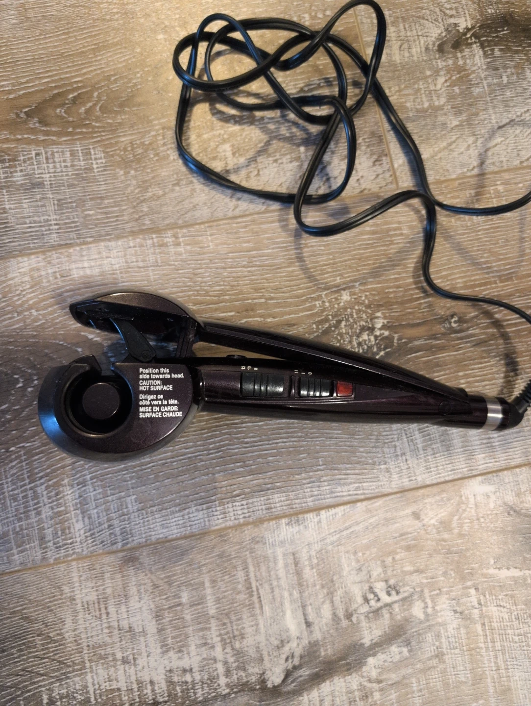 Conair Infiniti Pro Curl Secret automatic curler in dark purple. It creates beautiful curls quickly. This hair curler is designed for easy use.