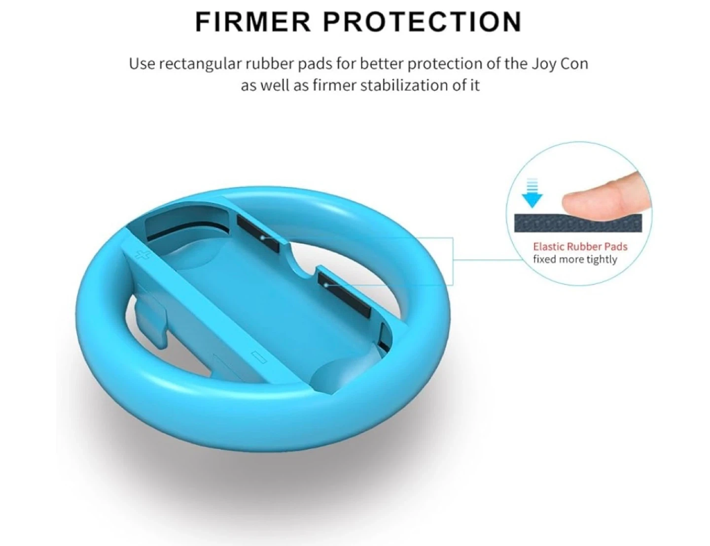 These Nintendo Switch steering wheels are designed for better gaming comfort. They feature a matte and sloping design for holding ease. Elastic rubber pads provide firmer protection and stabilization for your Joy-Cons.