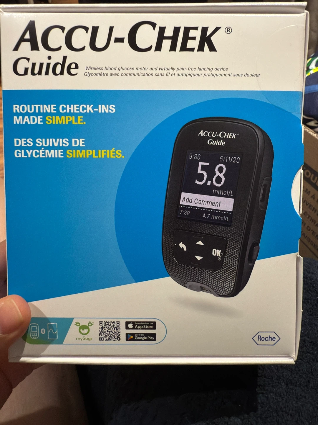 Selling a brand new Accu-Chek Guide blood glucose meter, still sealed in its box! It's a wireless glucose meter with a virtually pain-free lancing device. Features include advanced accuracy and a spill-resistant vial