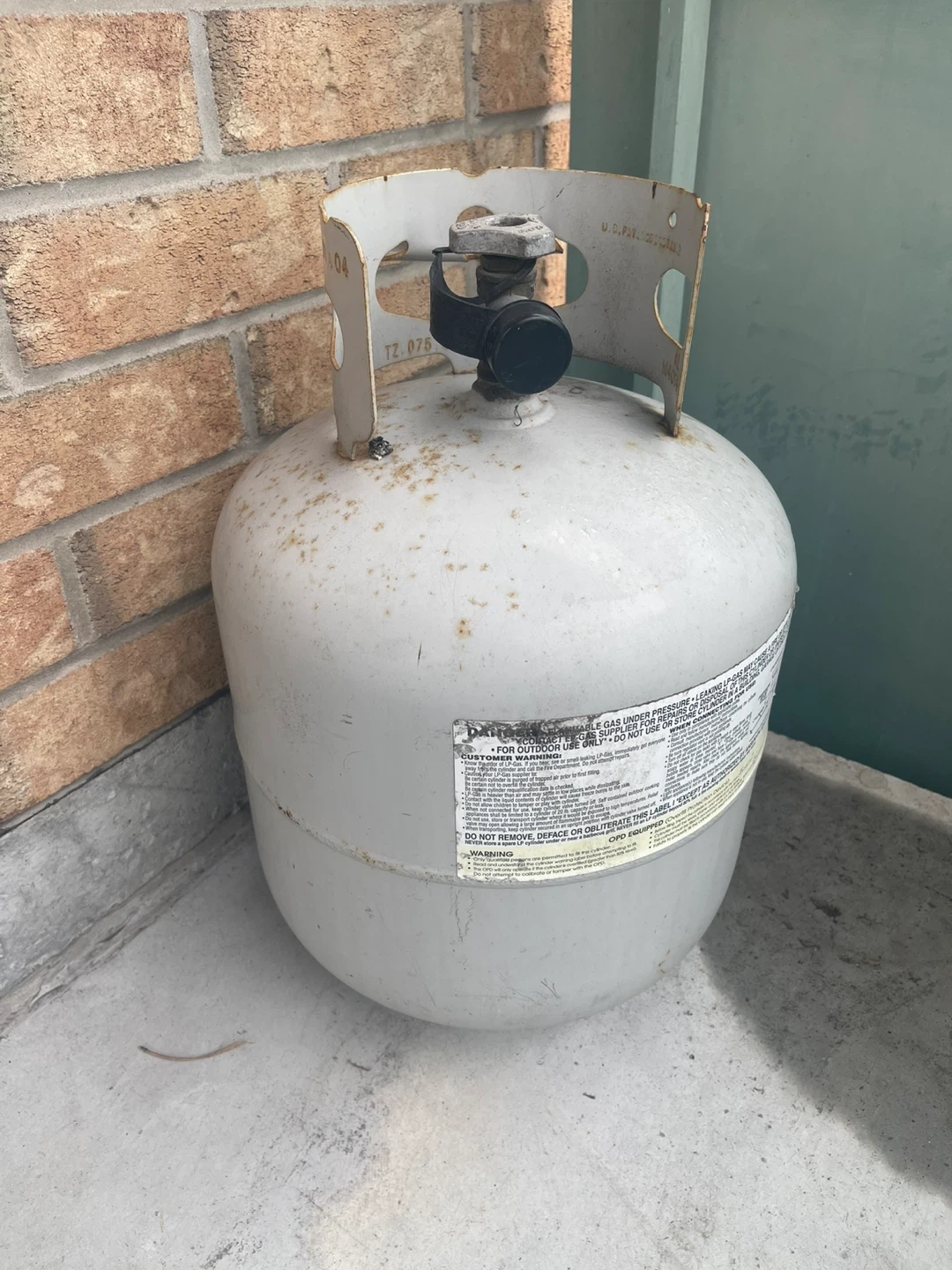 Standard propane tank cylinder. For outdoor use only. Please check local regulations for tank exchange or refill.