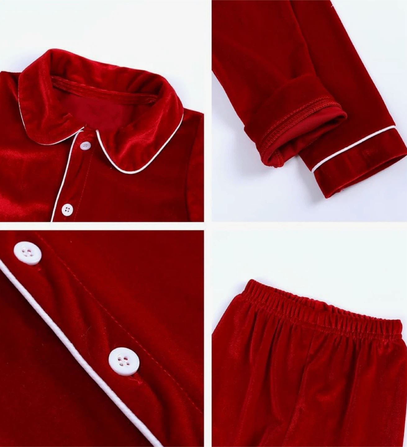 Men’s Luxury Red Velvet Straight Leg Pajamas for Dad - Size XL