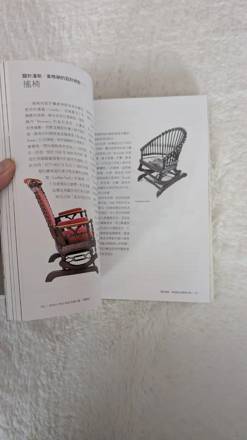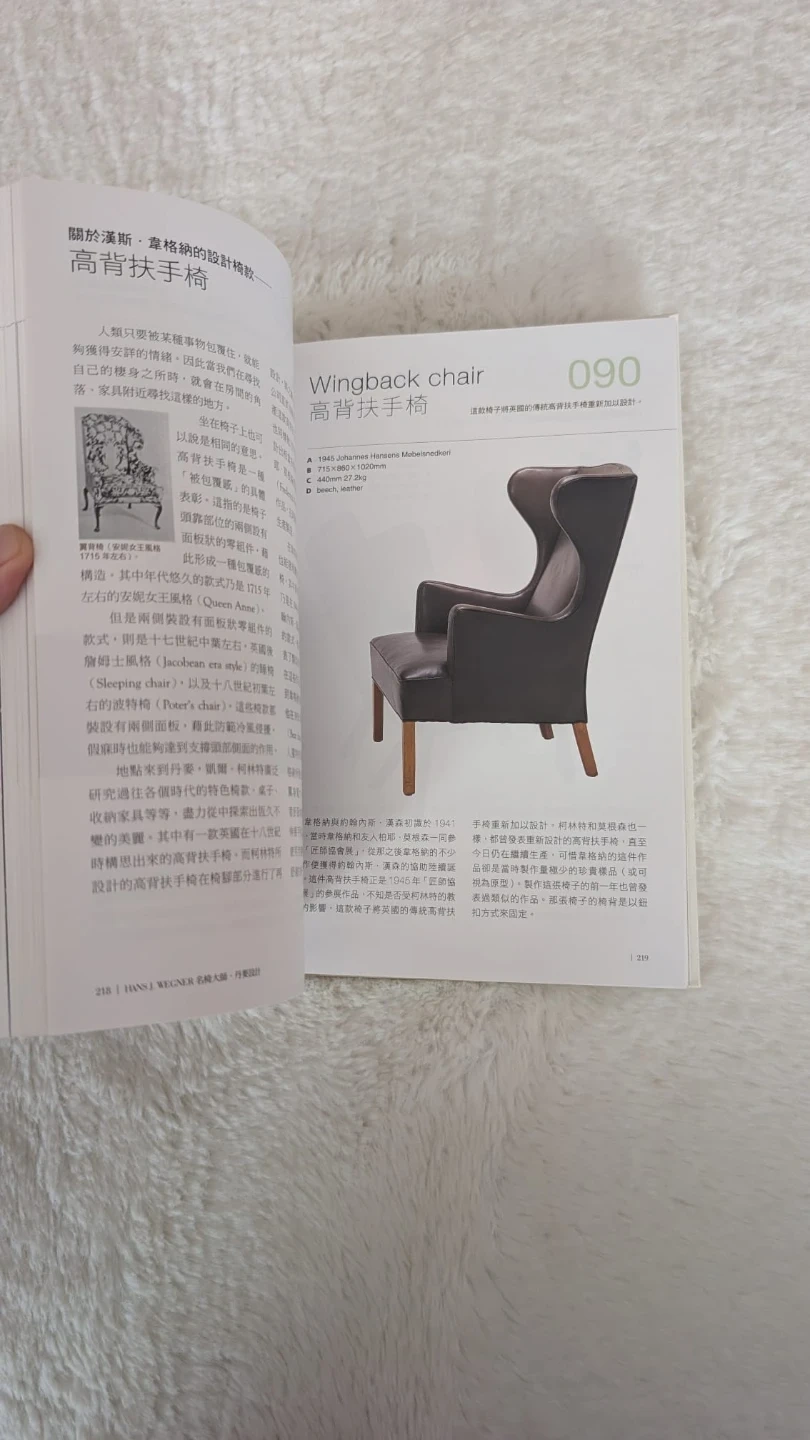 This book features various chair designs by Hans J. Wegner. It showcases a collection of his iconic furniture pieces. Includes detailed images and descriptions of each design. A great reference for furniture enthusiasts! I believe it is in Mandarin