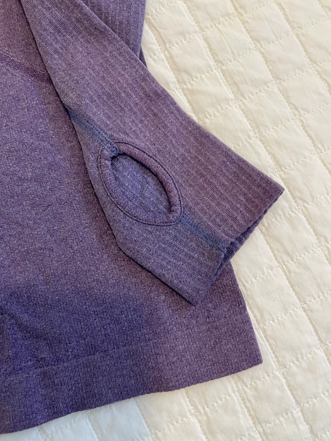 This Lululemon long sleeve top is a size 6. It features thumbholes for extra coverage. It's a great top for workouts or casual wear.