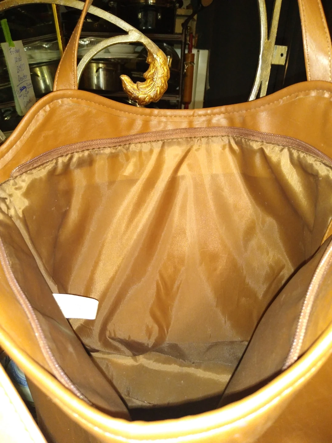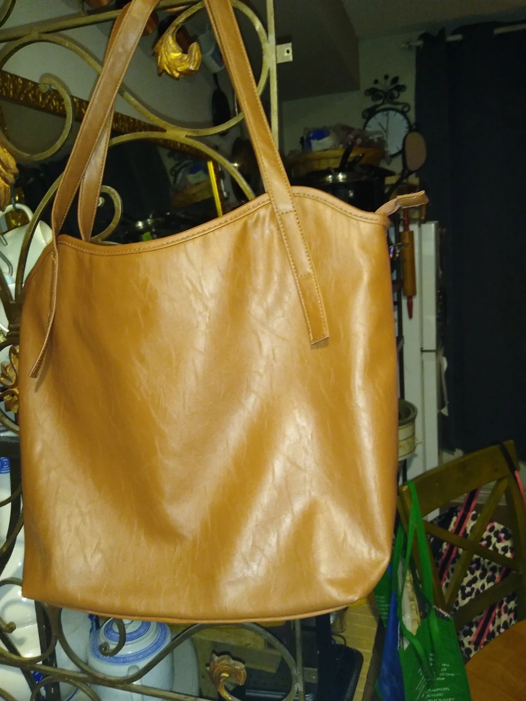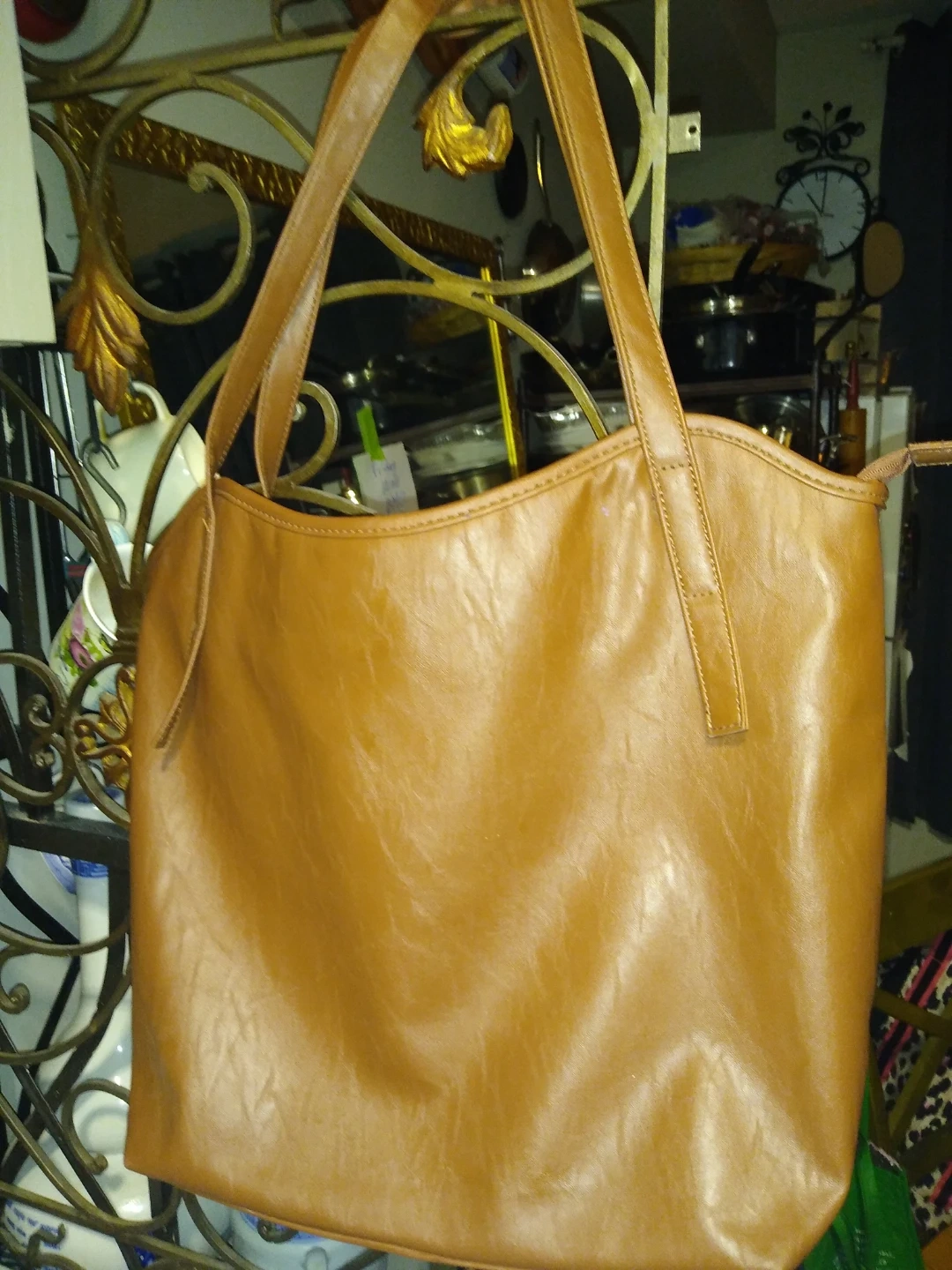 This is a really beautiful brown leather bag it's just a simple tote without lots of pockets or anything it's never ever been used brand new perfectly clean inside no scrapes nothing it's just lovely feels great too to the hand