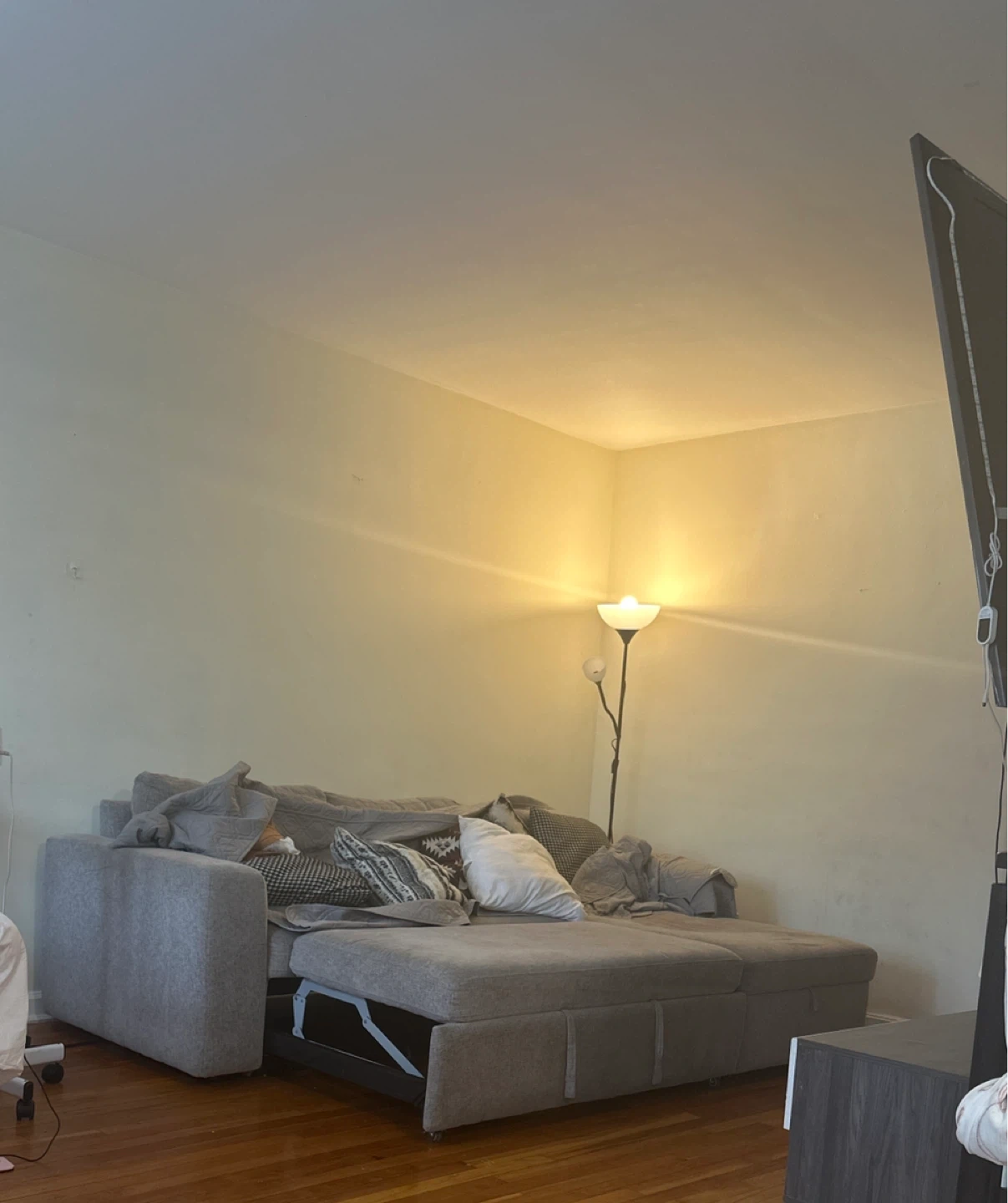 Selling a comfy gray sectional sleeper sofa! It's in great condition and perfect for a living room or entertainment space. It's a great size for lounging and can accommodate plenty of people. It's a great addition to any home!