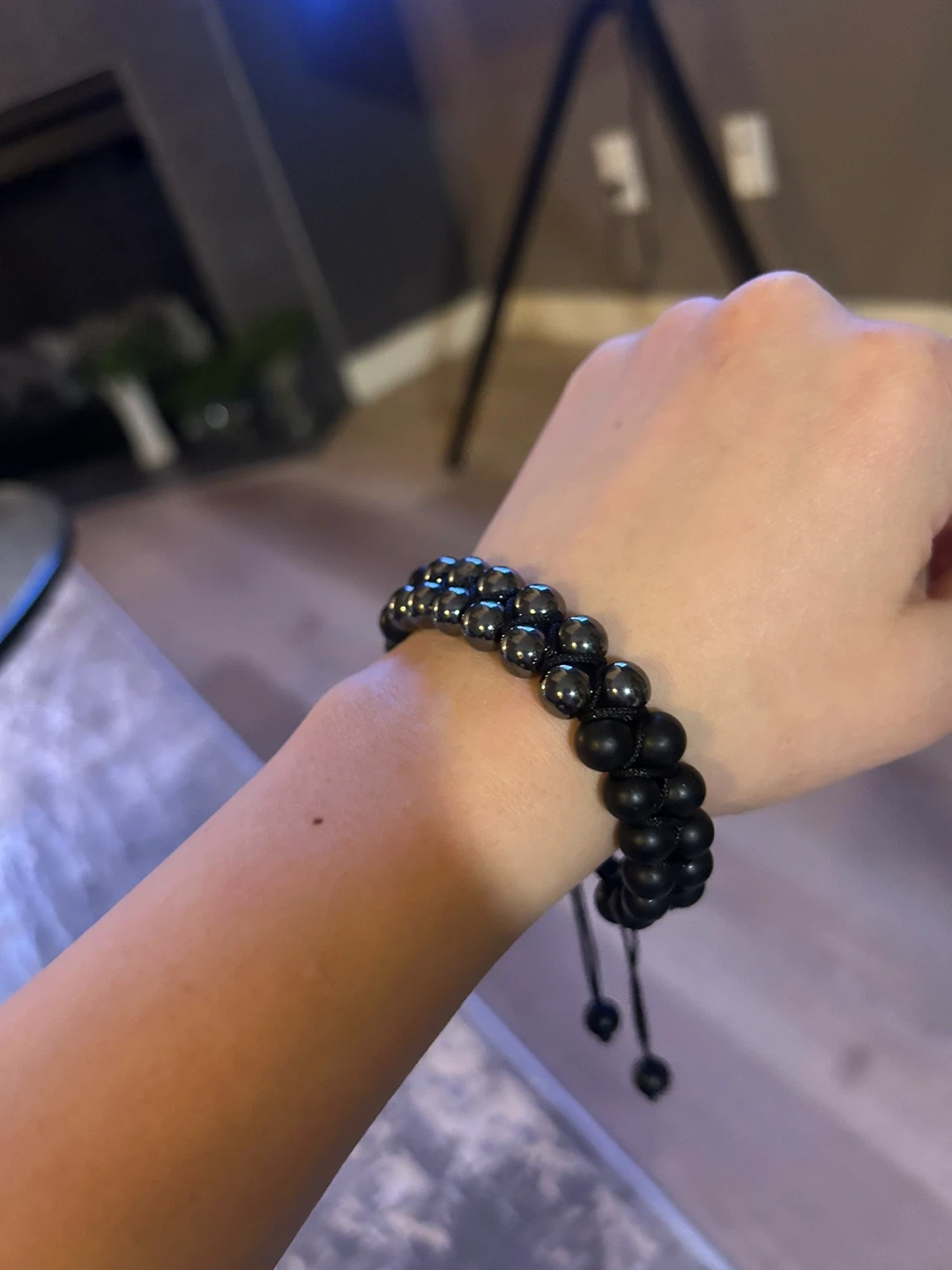 Black Onyx Beaded Bracelet – Adjustable, Unisex
