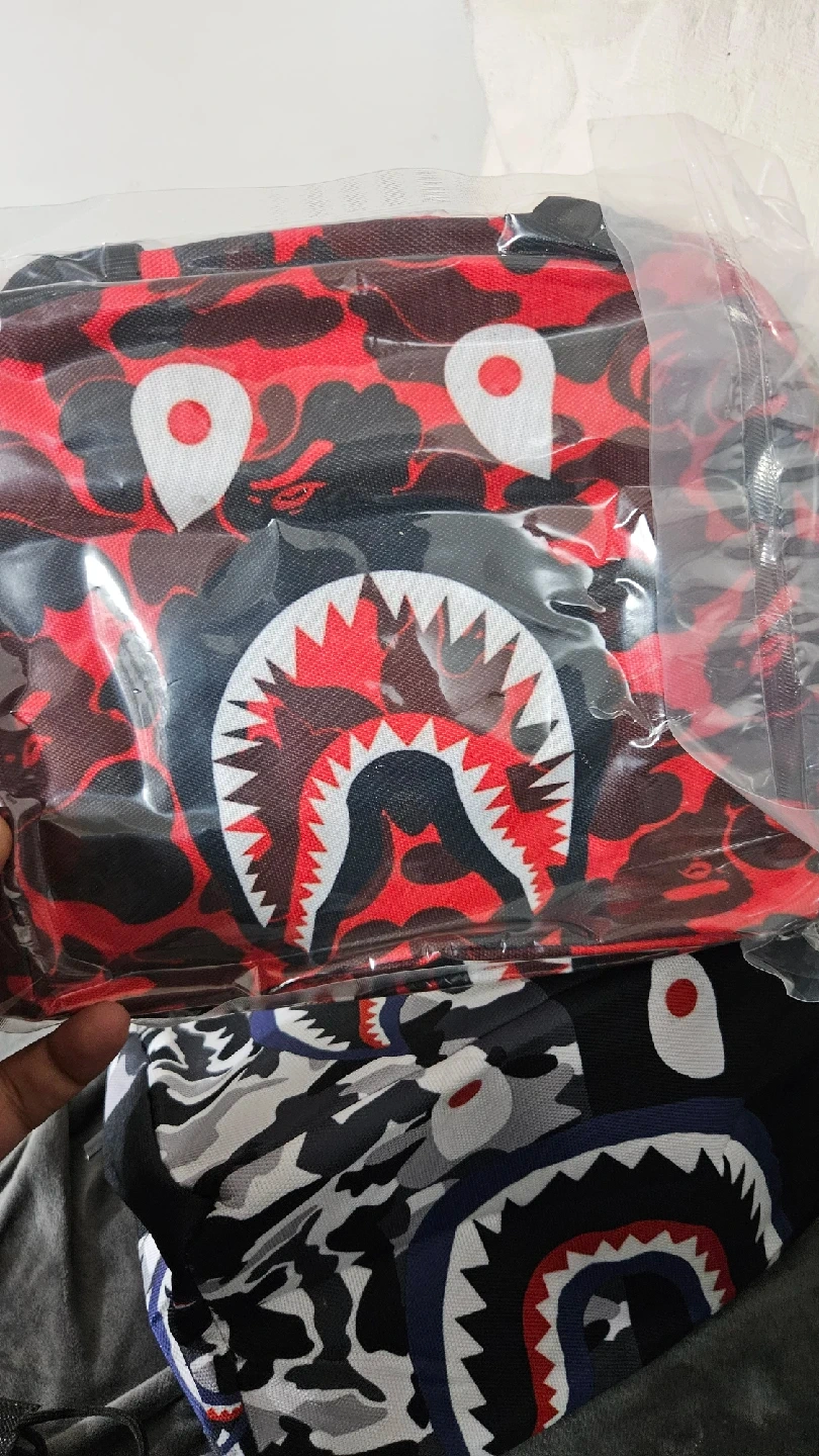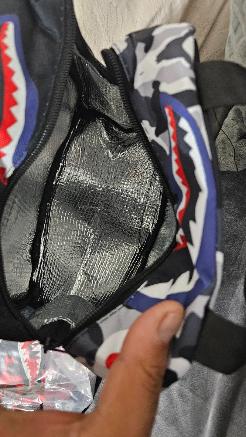 Keep your lunch cool and stylish with this BAPE shark camo lunch bag! It features the iconic shark design and is perfect for school, work, or picnics. The interior is insulated to keep your food fresh.