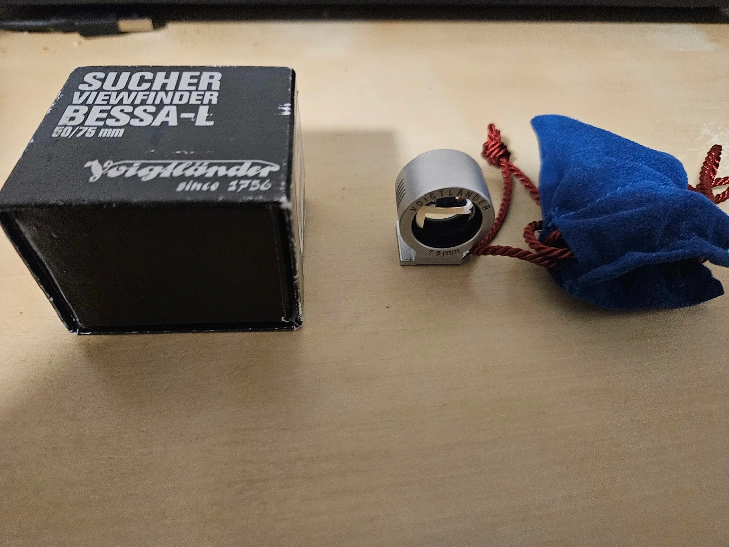 This is a Voigtlander BESSA-L viewfinder for 50/75mm lenses. It's silver in colour and comes with a protective blue pouch. Includes original box. I used only once. Like new