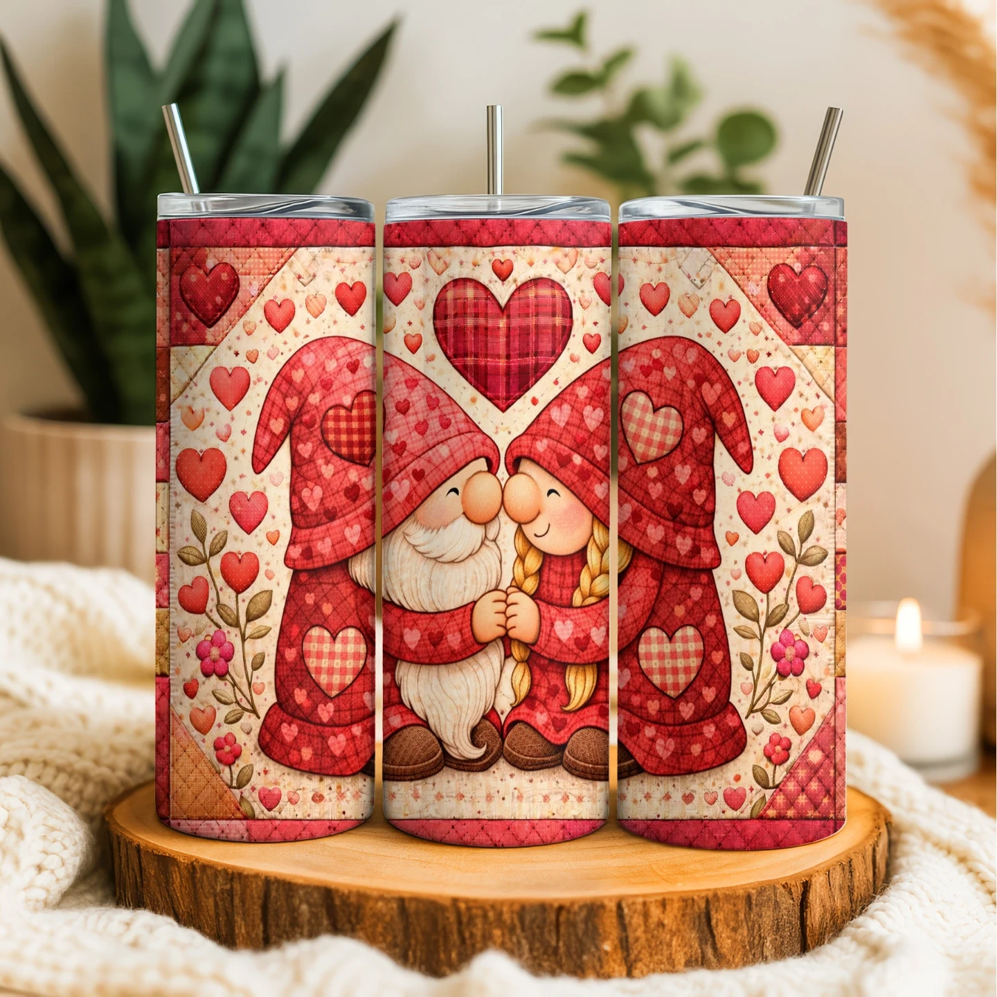 This tumbler features a sweet Valentine's Day design with two gnomes holding hands. It comes with a metal straw and is perfect for enjoying your favourite beverages. Makes a lovely gift for someone special!