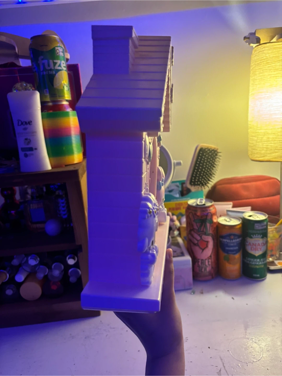 This adorable pink cuckoo clock features My Melody characters. It's a fun addition to any room. Requires one AA battery, not included.