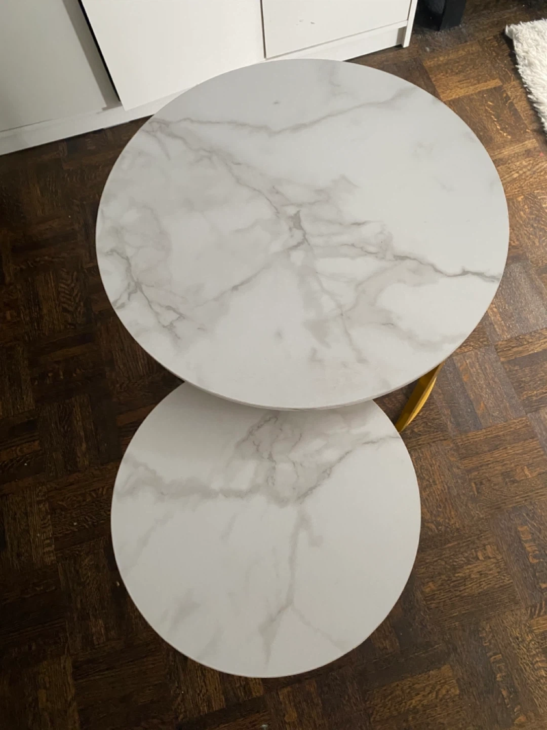 Set of 2 Round Nesting Coffee Tables - Marble Look & Gold Legs
