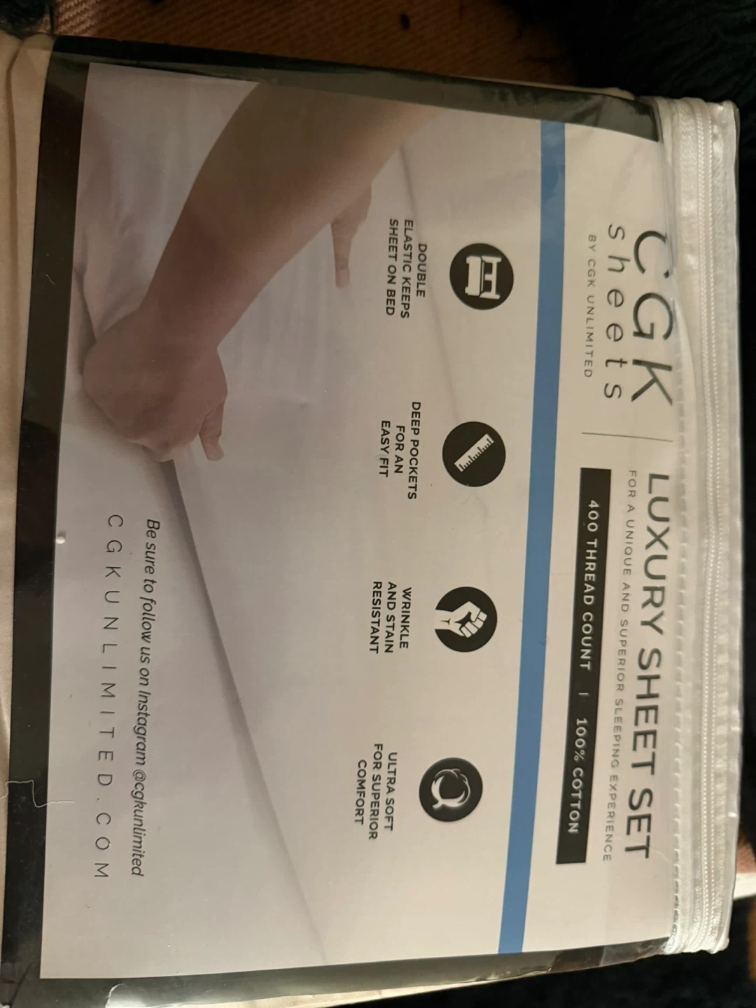 I'm selling a brand new CGK Unlimited luxury sheet set! This is a queen size set in the color Cotton Cream. It's made of 100% cotton and has a 400 thread count. The sheets feature:
