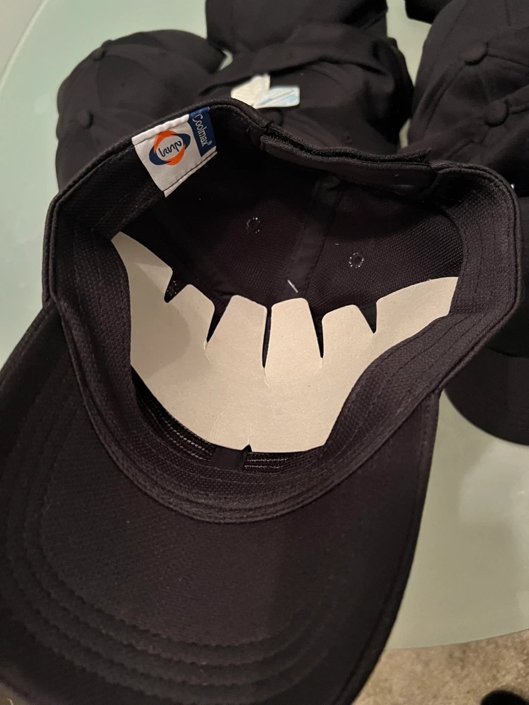 This set includes 18 black baseball caps made with CoolMax Active fabric. It's designed to transport moisture away from your body, keeping you cool and dry. These caps meet INVISTA performance standards for moisture management and breathability. Perfect for active individuals!