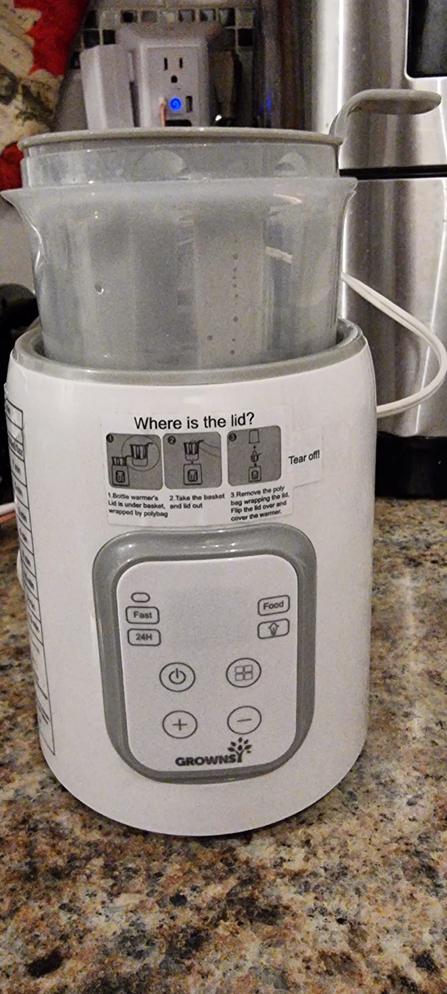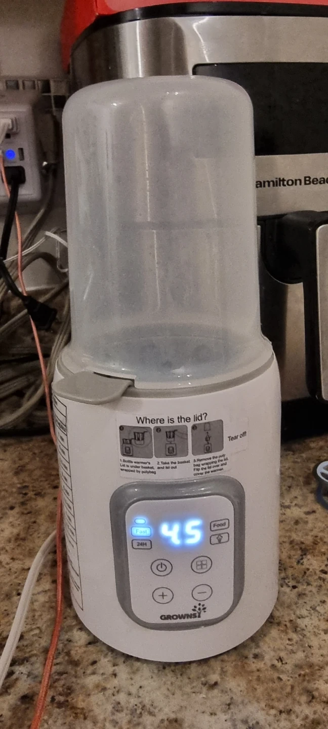 Selling a Grownsy baby bottle warmer. It has a reference chart for fast warming function printed on the side. It also has a control panel with buttons for power, temperature adjustment, and mode selection. Perfect for quickly and safely warming baby bottles!