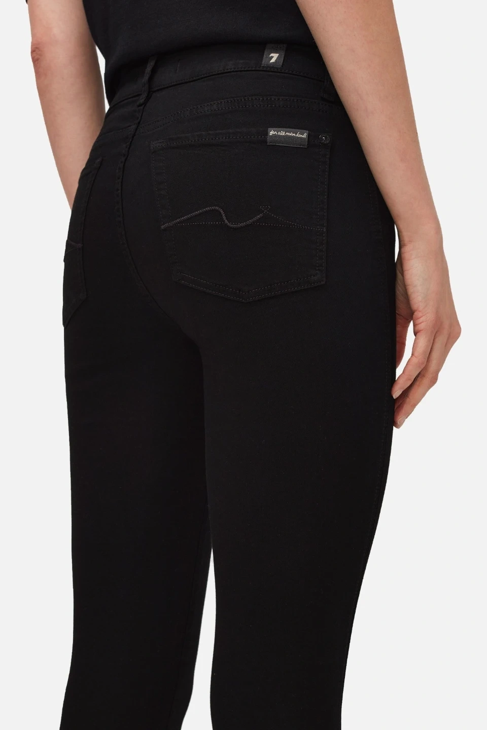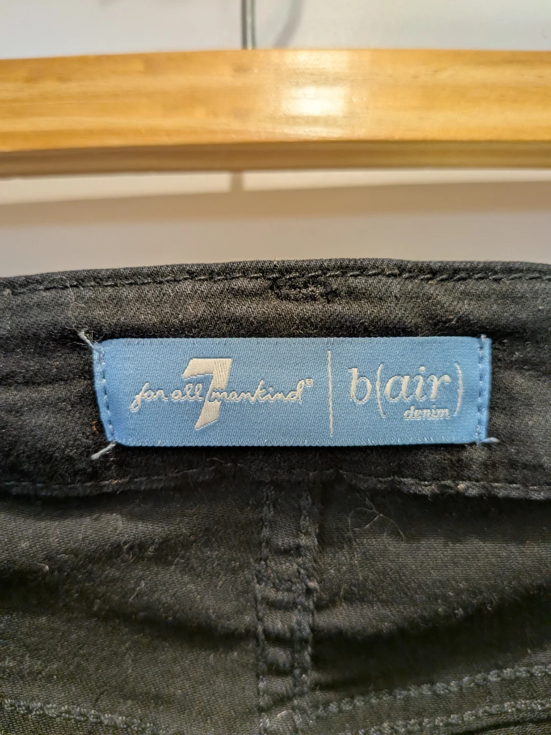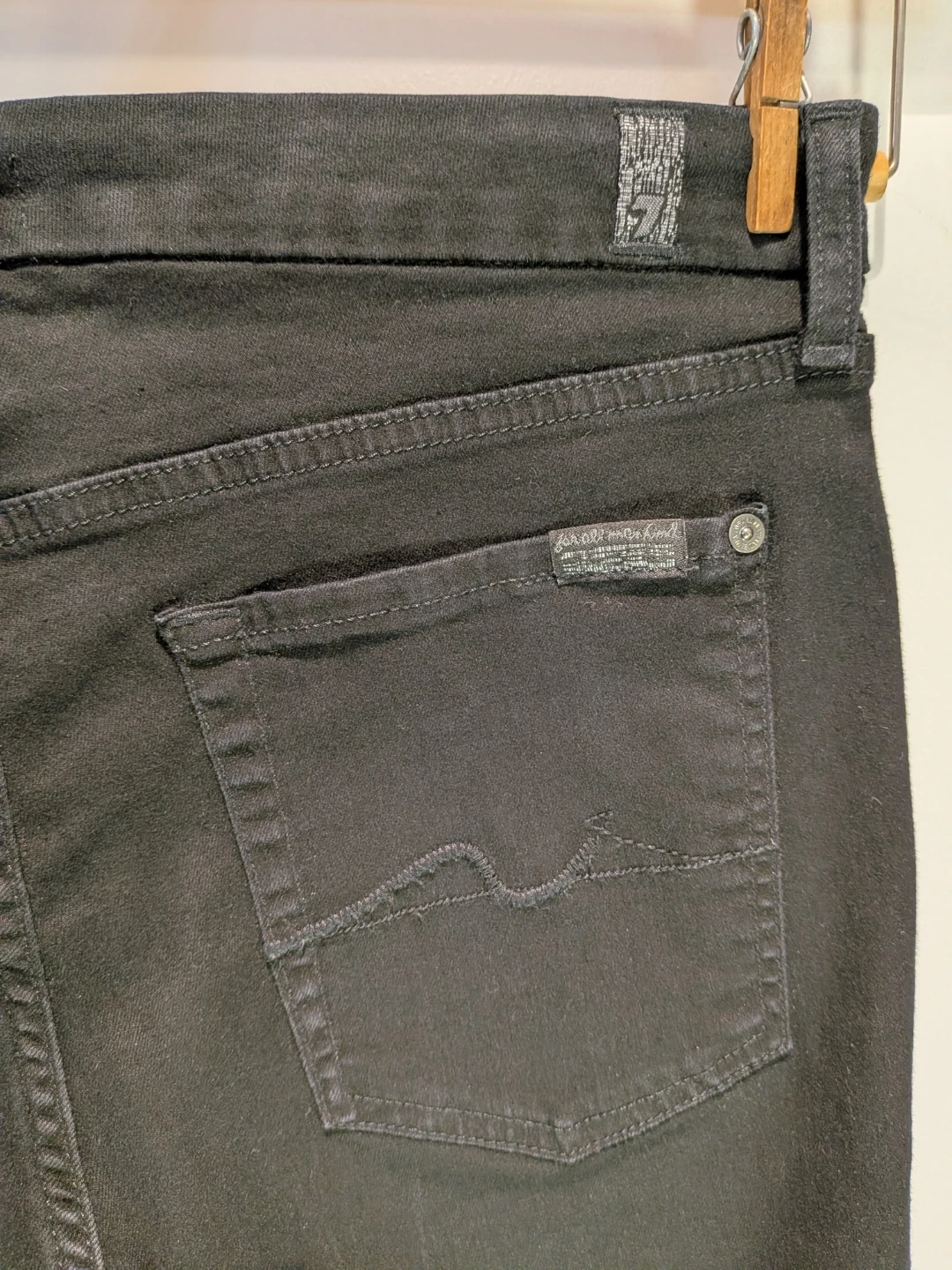 7 For All Mankind (B)Air Kimmie Straight jeans, black, sleek, with a soft and comfortable stretch. Older pair, slight wear on the back pocket stitching but purely cosmetic, otherwise in great condition. 😊