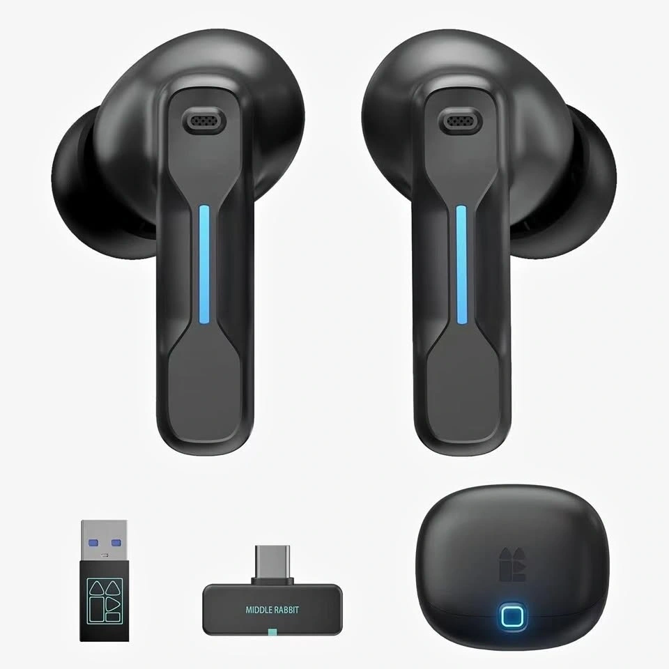 Middle Rabbit SW5 2.4G Wireless Gaming Earbuds with Mic, 20ms Ultra-Low Latency, USB-C Dongle & Bluetooth 5.4 Dual-Mode Headphones, 4-Mic Clear Voice, Compatible with PS5/PS4/PC/Laptop/Steam Deck/VR.