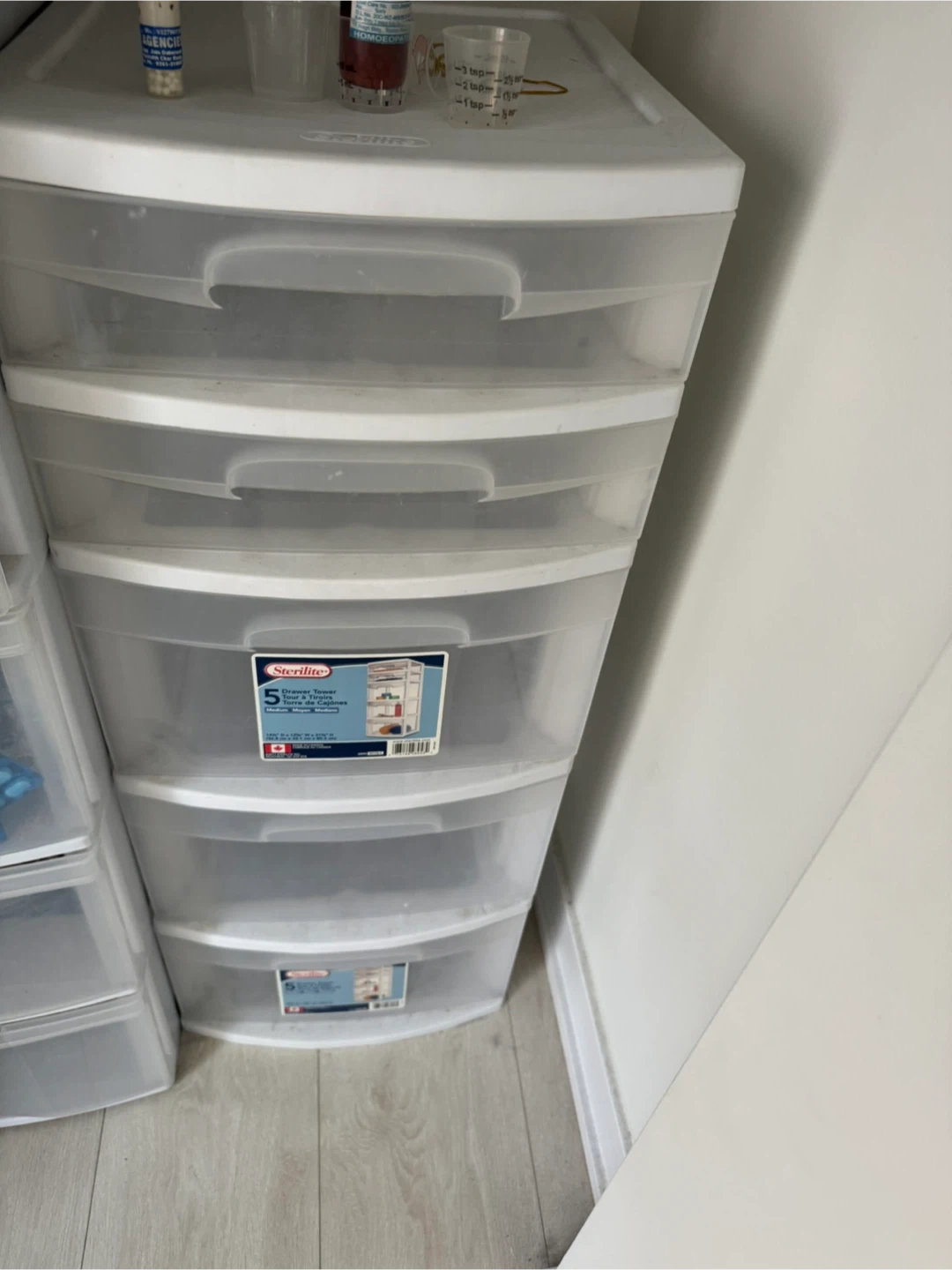 This Sterilite rolling drawer unit offers 5 clear drawers for storage. It's made of durable plastic and perfect for organizing small items. Each drawer has a handle for easy access. Ideal for craft supplies or small accessories!