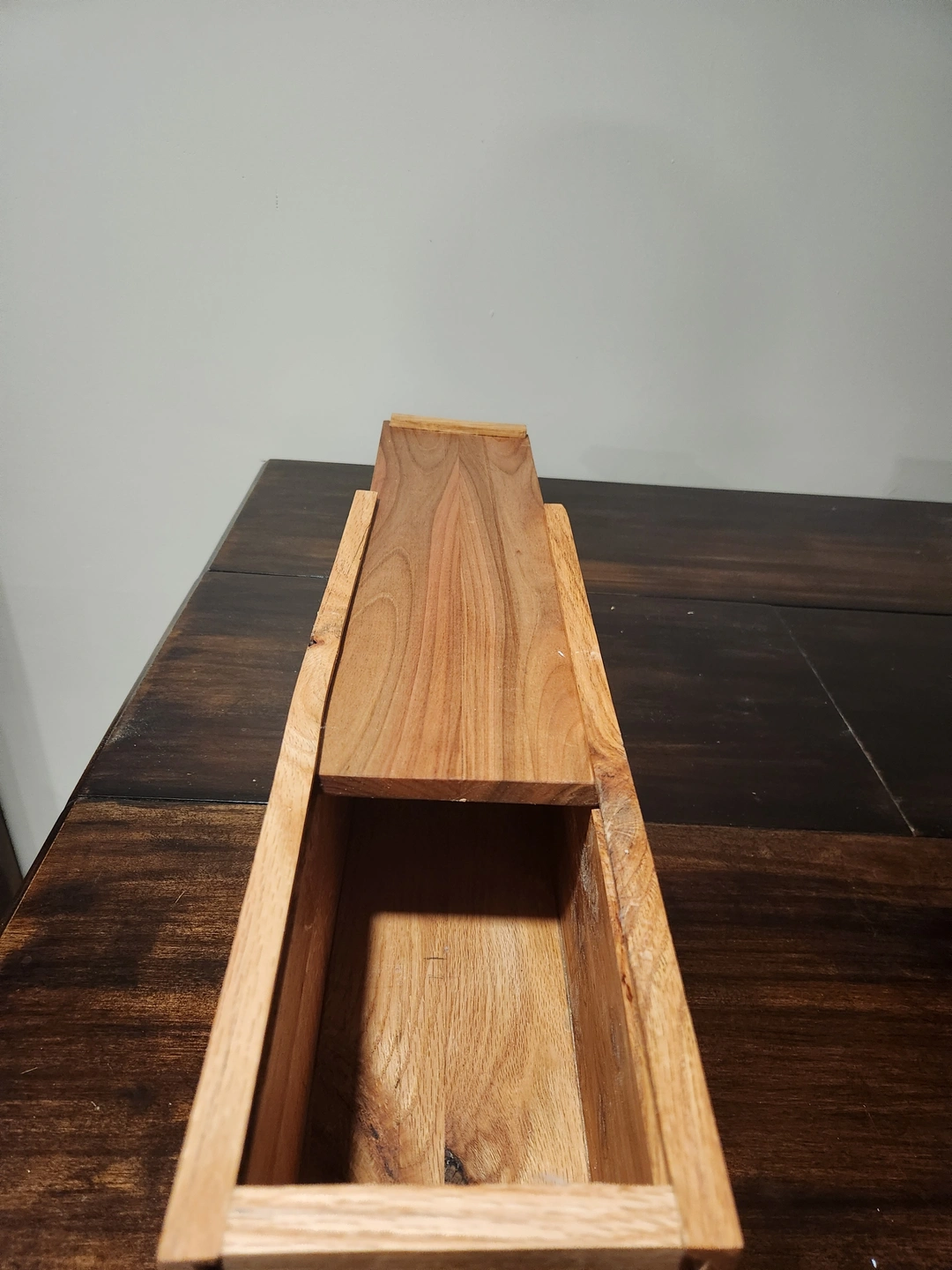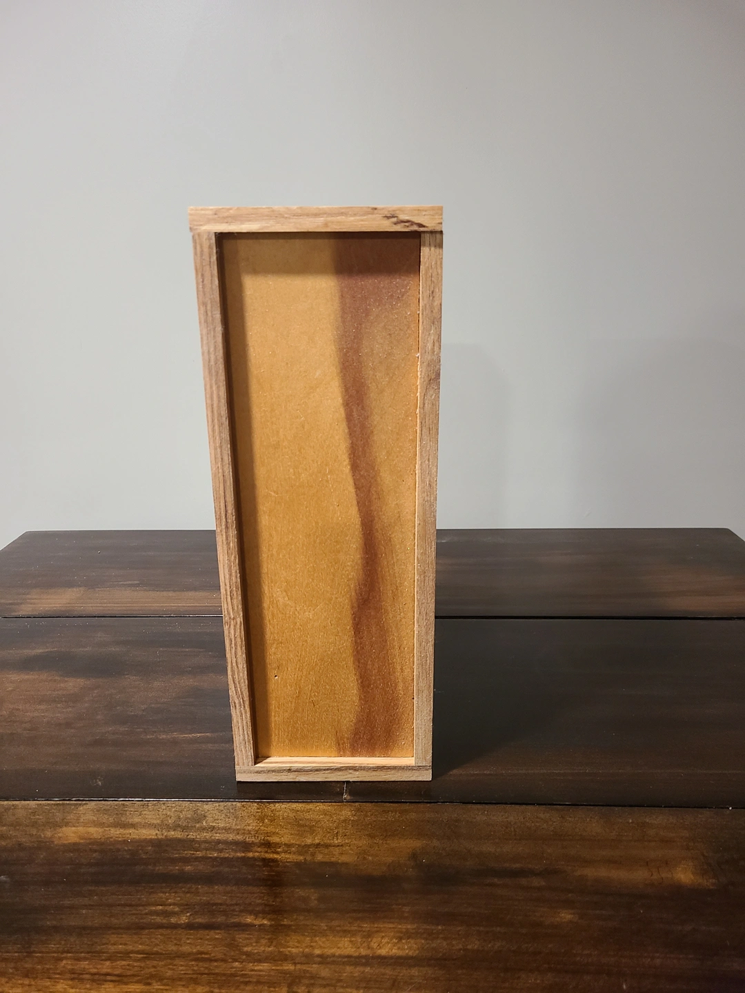 These are wood boxes (oak, maple pine)with sliding tops. Small boxes are about 13 inches, inside length or large about 15 inches inside length. Boxes have a natural finish. Boxes can also be personalized (additional cost depending on what is printed, example pic shows $5 personalization) Small $15, Large $20