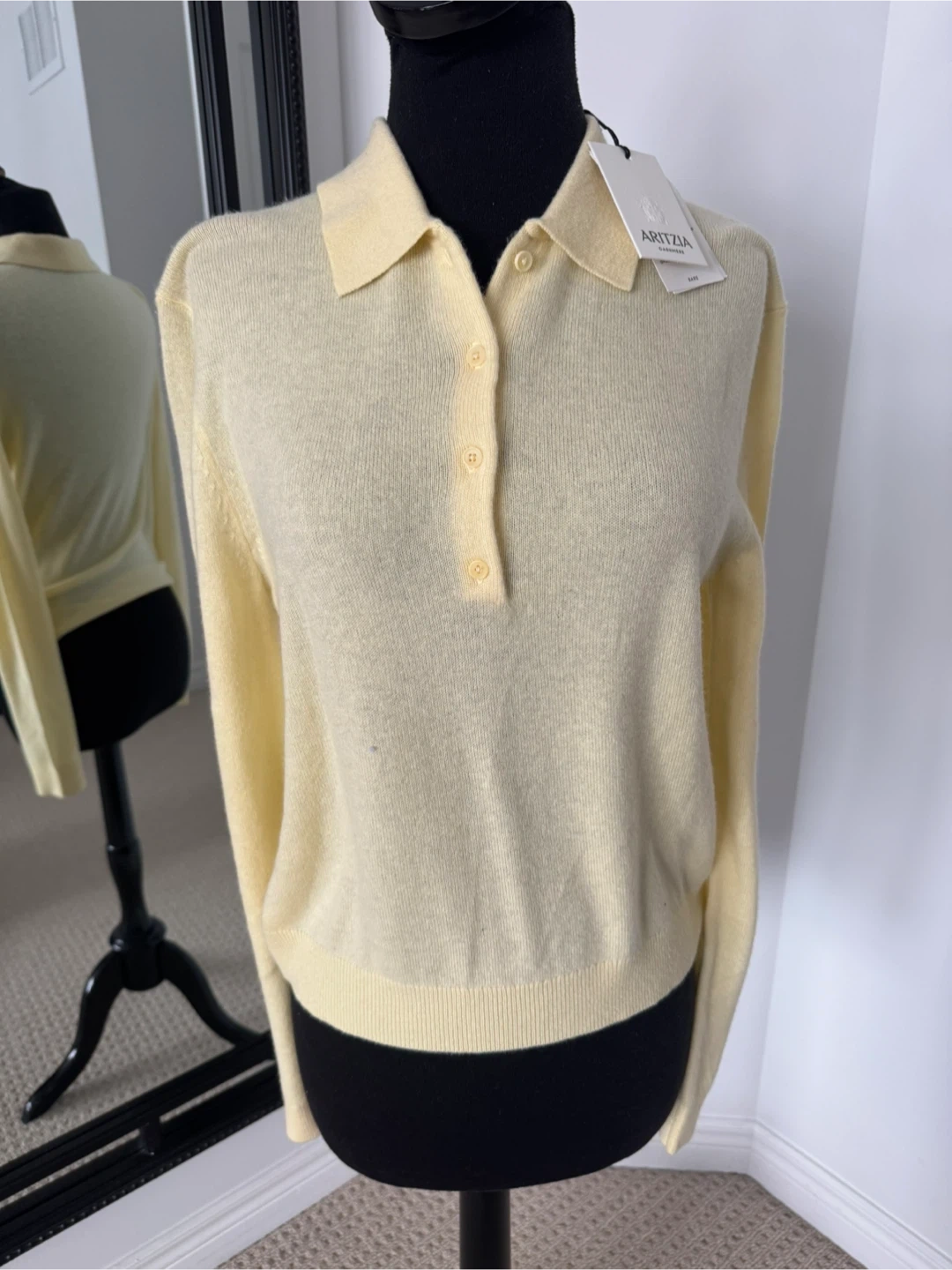Aritzia "Butter Yellow" Cashmere Polo Sweater