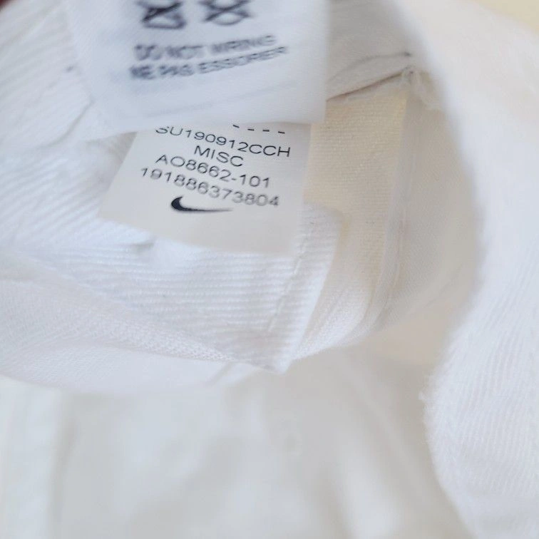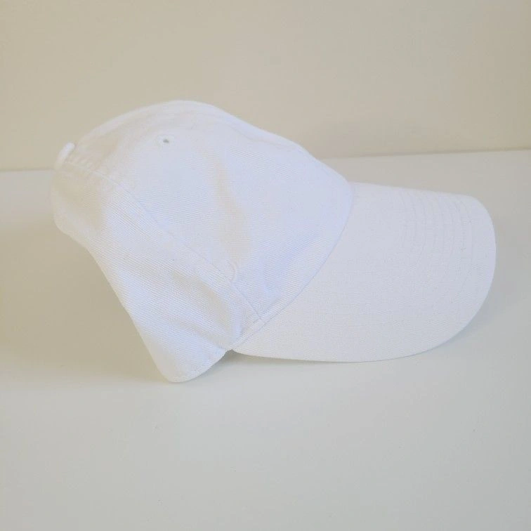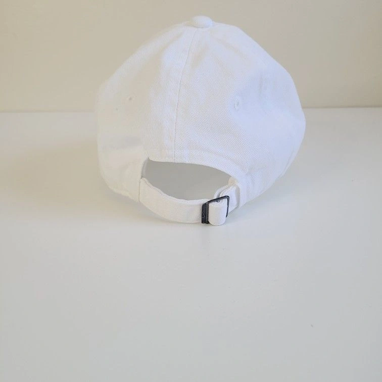 This Nike hat features a classic strap back design, perfect for casual wear. The embroidered black Swoosh on a white background adds a stylish touch. Adjustable fit ensures comfort for all-day wear. Good used condition, freshly washed.