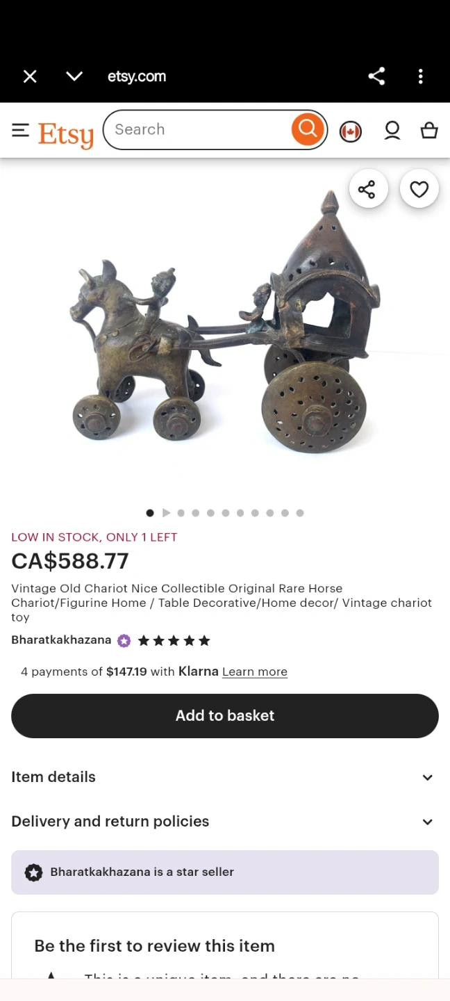 Vintage-style Metal figurine - Horse Carriage (Indian heritage)