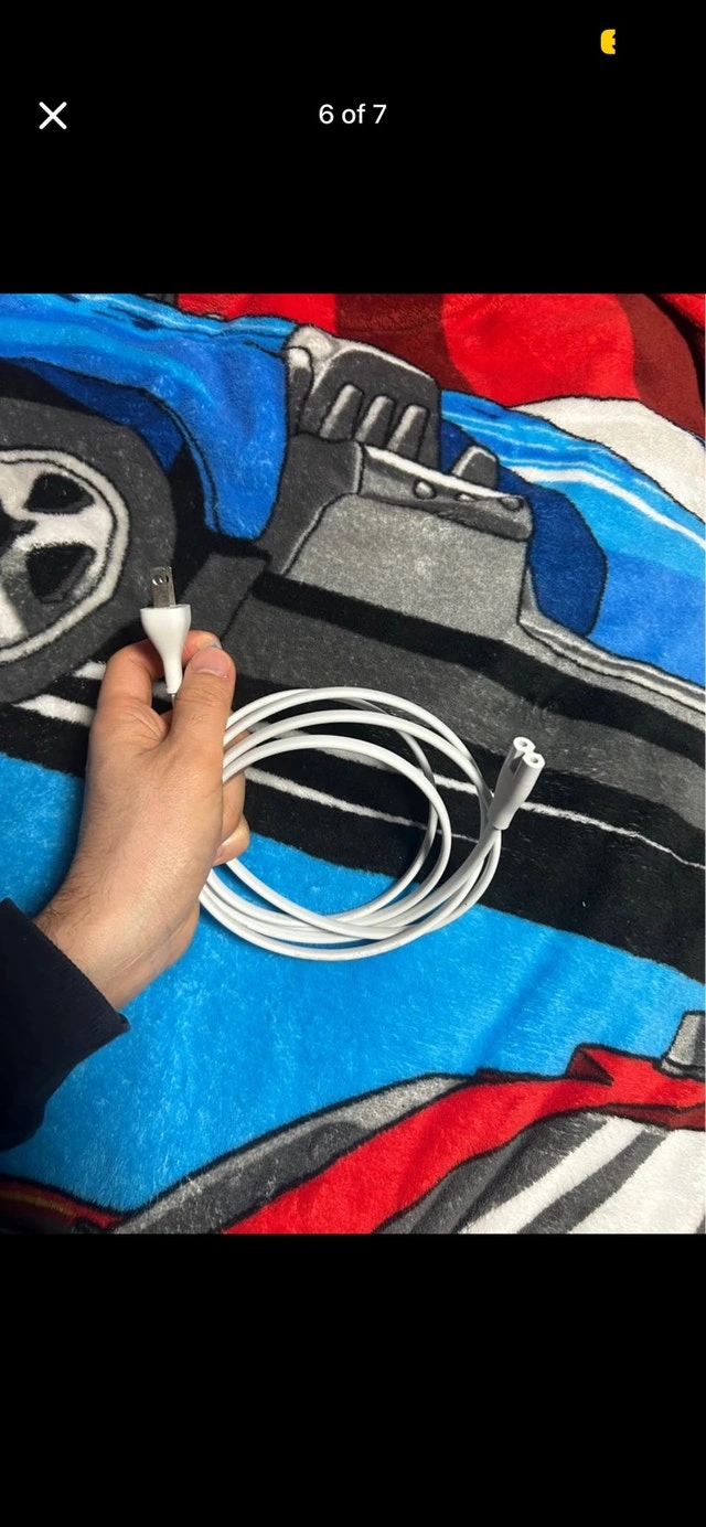 Original Apple power cord. Label shows: Apple 02-622-0349, 2.5A 125V, China. This is the common “figure-8” (IEC C7) style cable—works with many Apple devices/power bricks that take the figure-8 connector (and also other electronics that use the same plug). Pickup: Jarvis & Carlton, Toronto or Erindale Mississauga. Cash or e-transfer accepted. Feel free to bring your device to test at pickup. $20