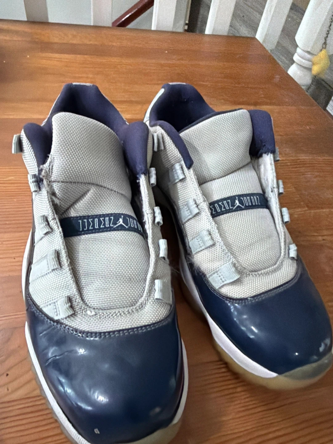 Classic Air Jordan 11 sneakers in the iconic Concord colourway. These are size 9 . Only selling to those people who knows how to restore - no lace and not abuse . But forgotten .