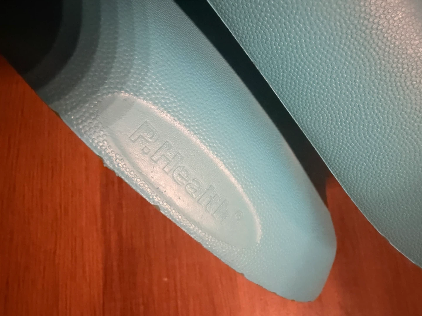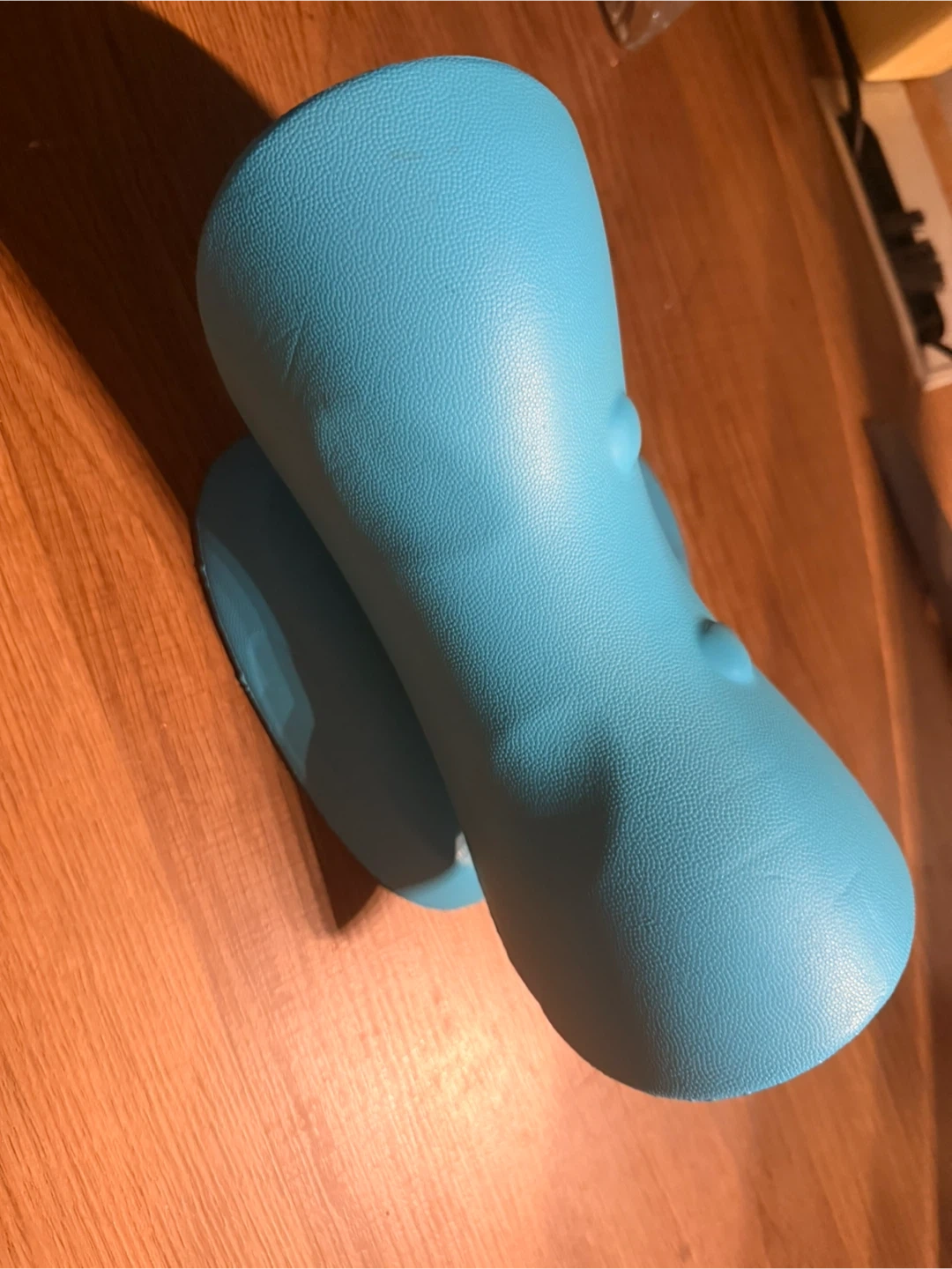 This blue P.Health neck pillow provides cervical traction. It's made of a textured material for grip. The unique shape supports the neck for relaxation or stretching.