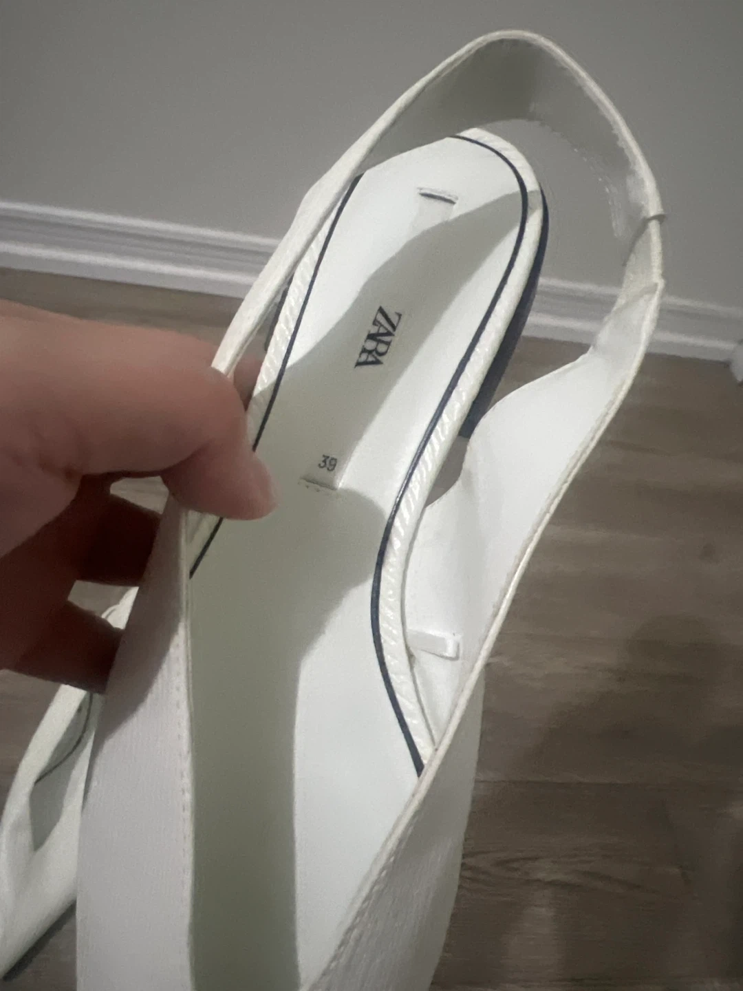 Zara White Slingback Pointed Toe Flats Women's Size 39