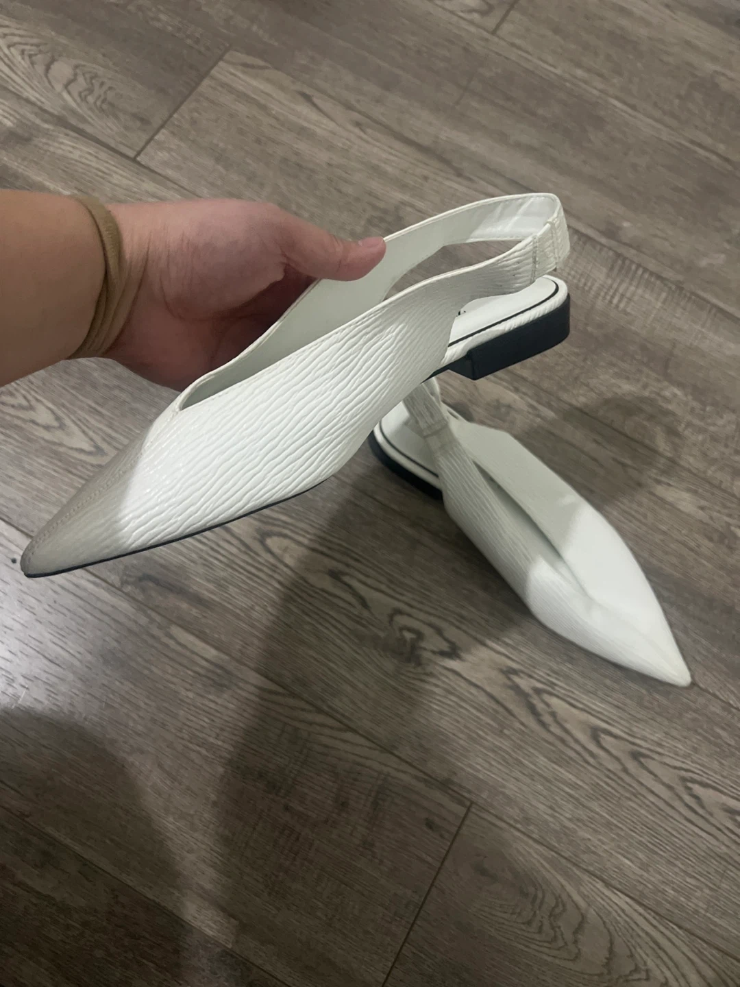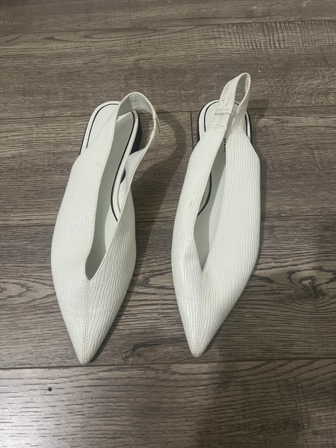 Stylish Zara white slingback flats with a pointed toe. Textured faux leather material. European size 39.