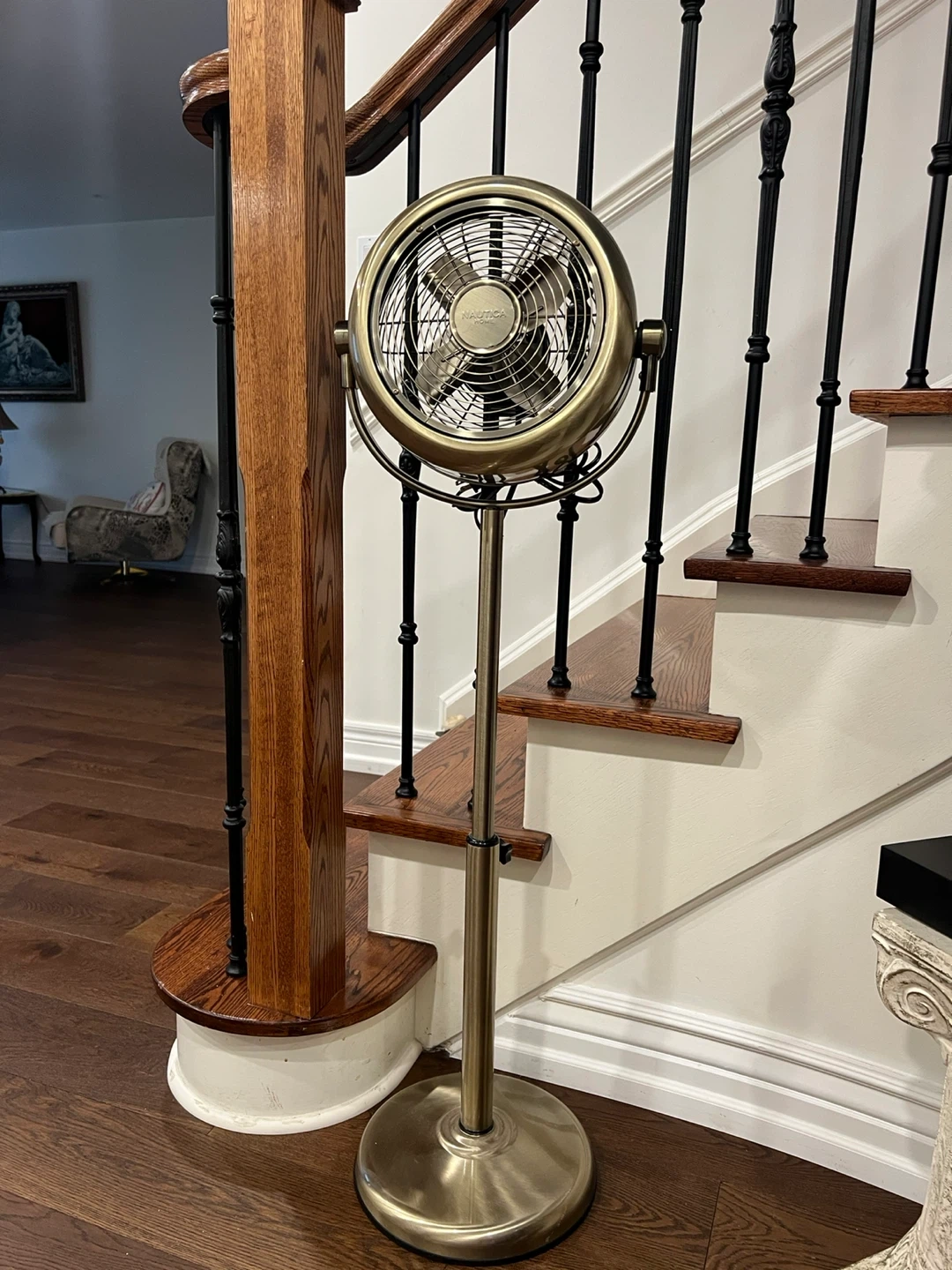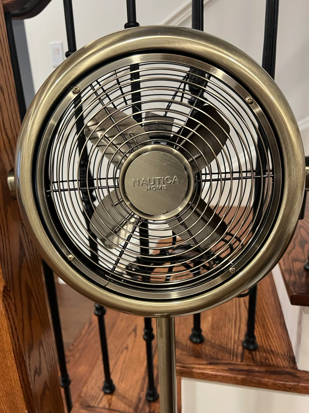 This Nautica Home pedestal fan offers a stylish brass finish. It's perfect for circulating air in any room.