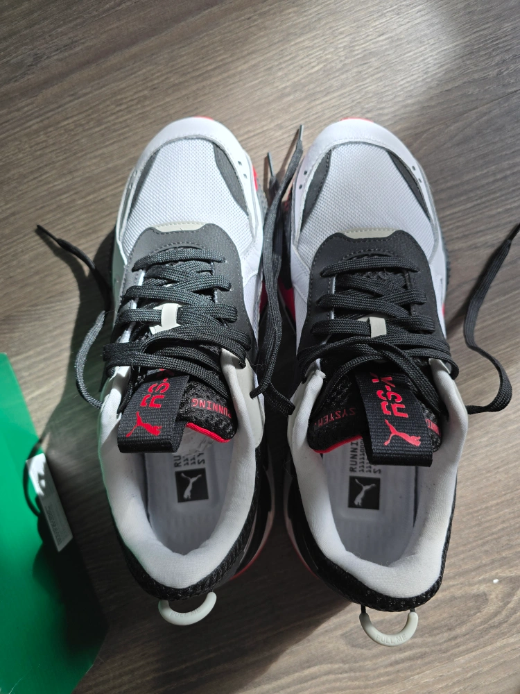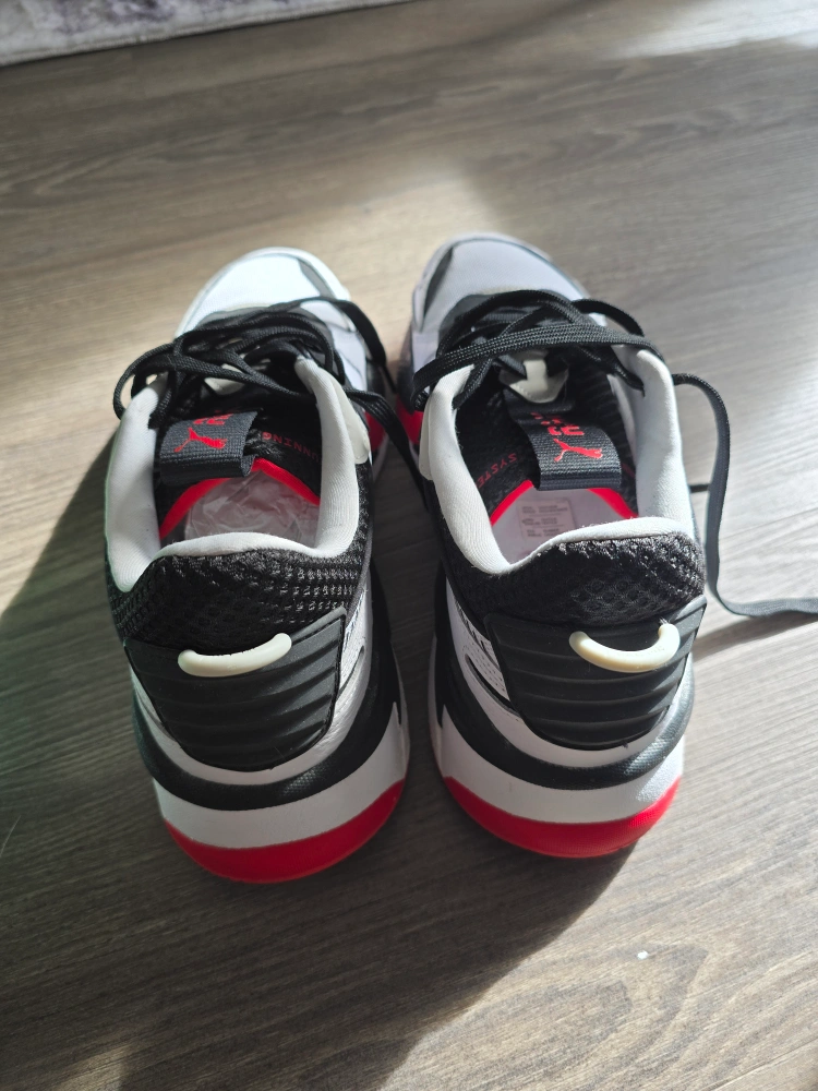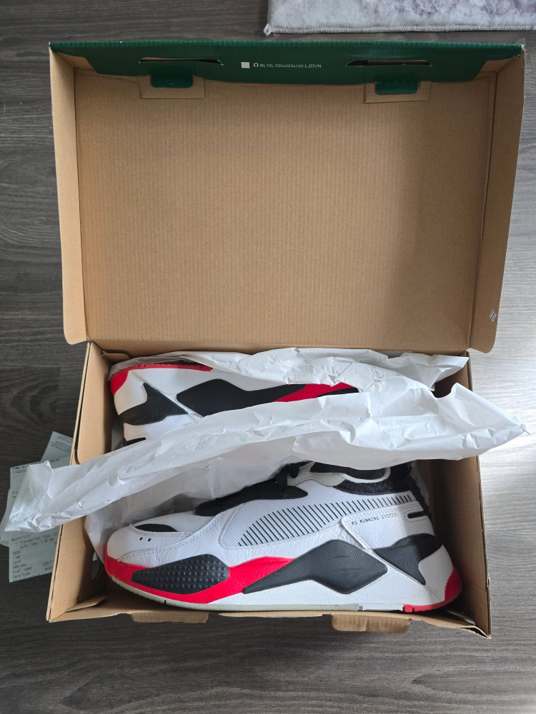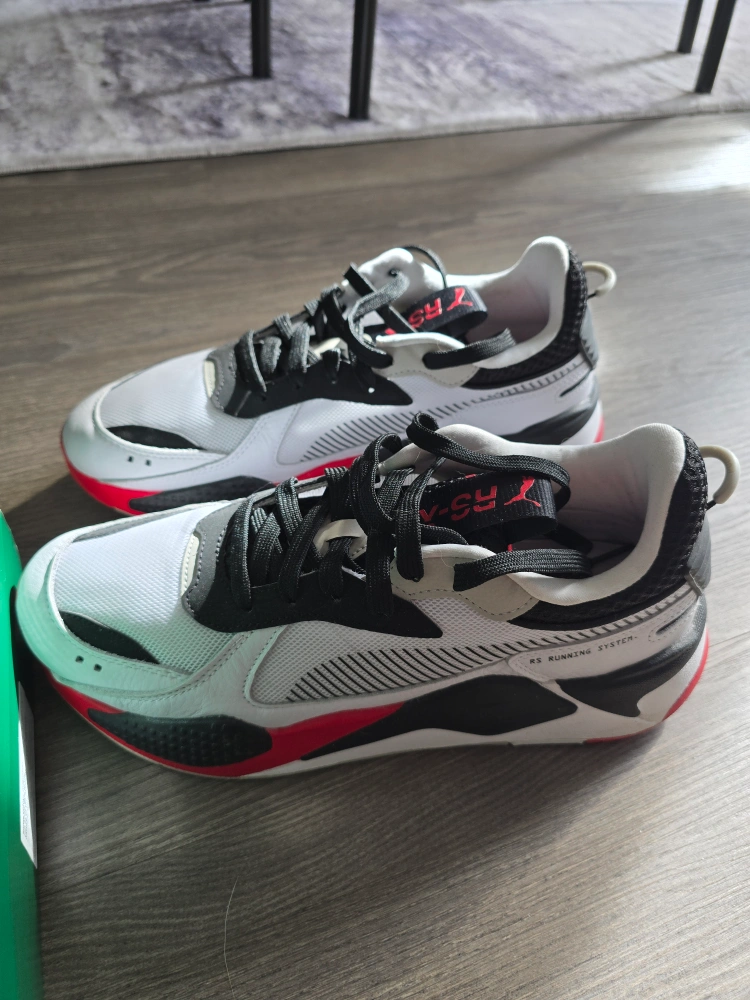 New Puma RS-X running shoes. White, black, and red colourway. RS Running System technology. Comes in original box.
