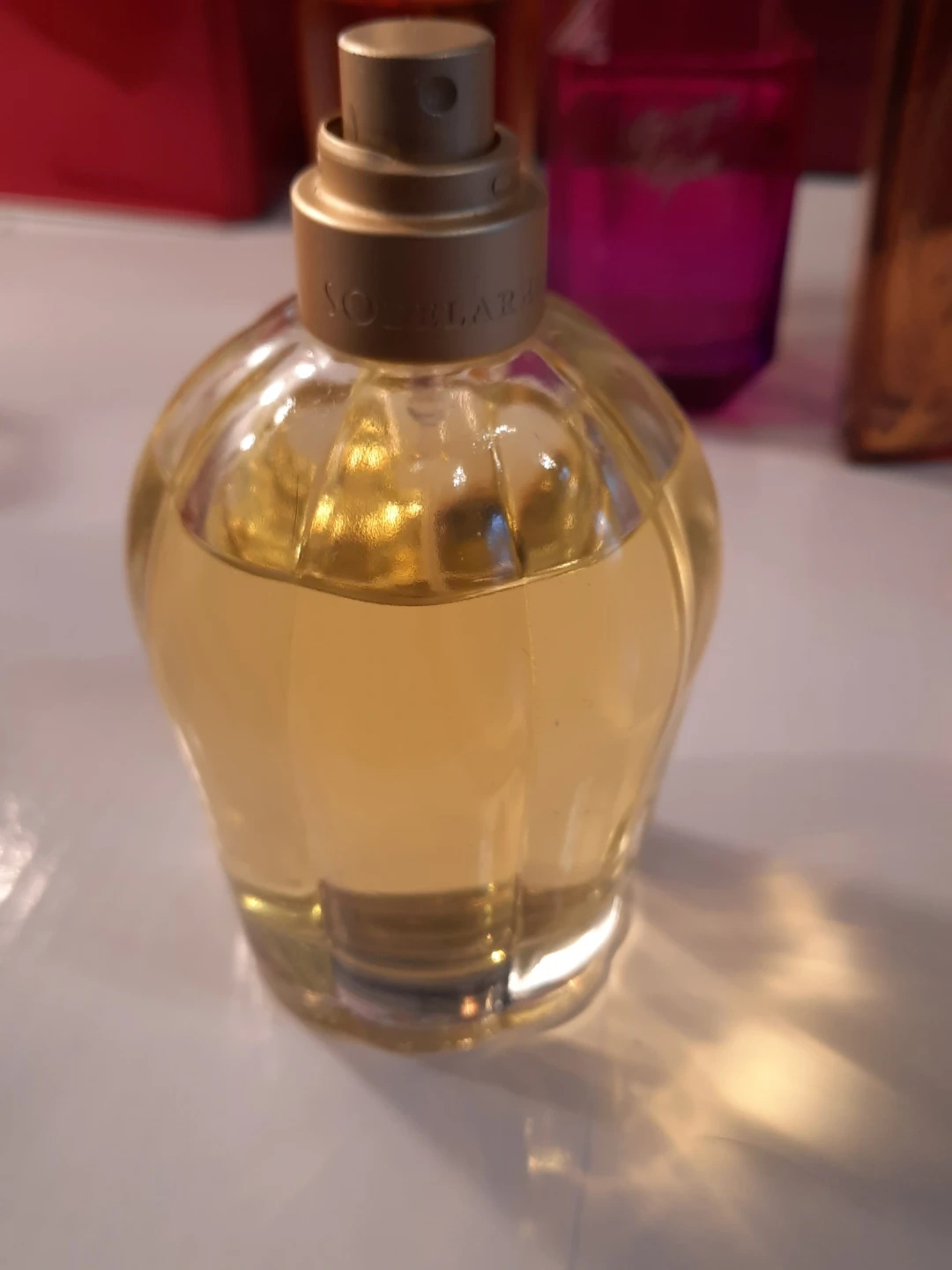 So de la Renta Eau de Parfum spray for women. It's a 3.4 fl oz / 100 mL bottle. This fragrance is from Oscar de la Renta. It comes in a unique fluted glass bottle with beautiful smell,long longevity.pick up in oshawa..missing top cup.