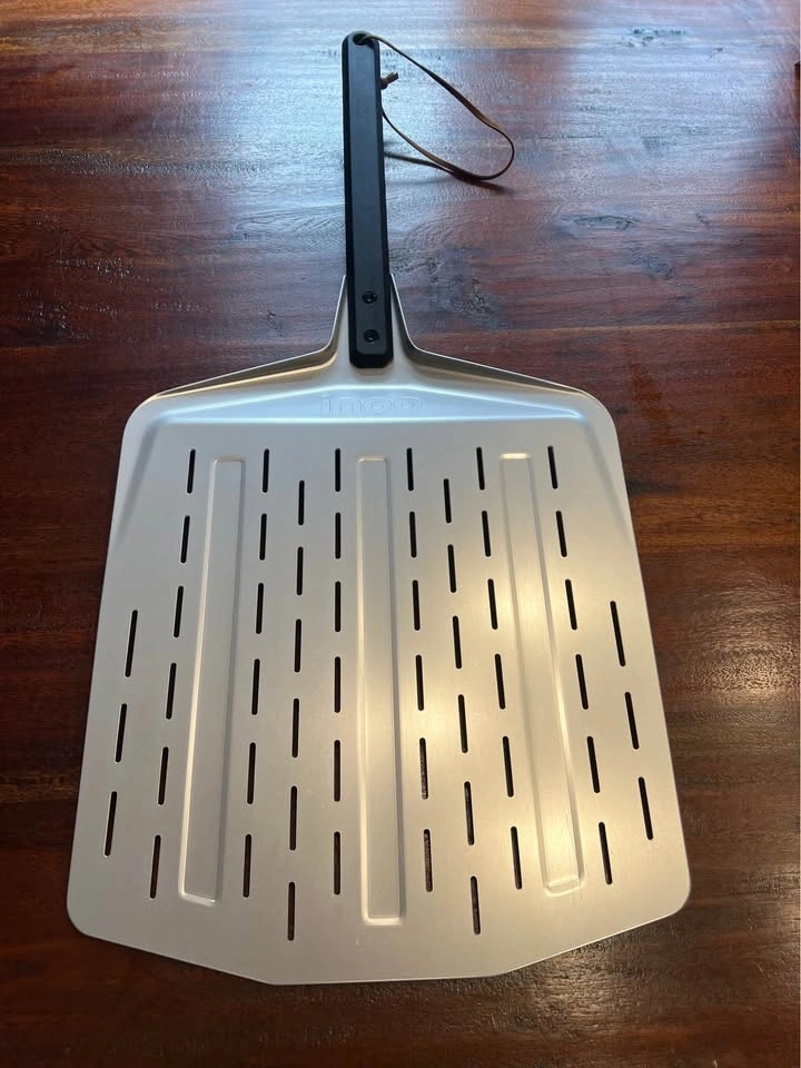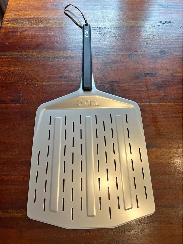 Brand new, we bought but didn’t use. The Ooni 12" Pizza Peel is a lightweight, durable, and all-purpose tool for prepping, launching, turning, and retrieving pizzas up to 12 inches wide. It features a high-quality aluminum blade, a tapered edge for easy sliding under dough, and a sleek design ideal for all Ooni 12-inch ovens.