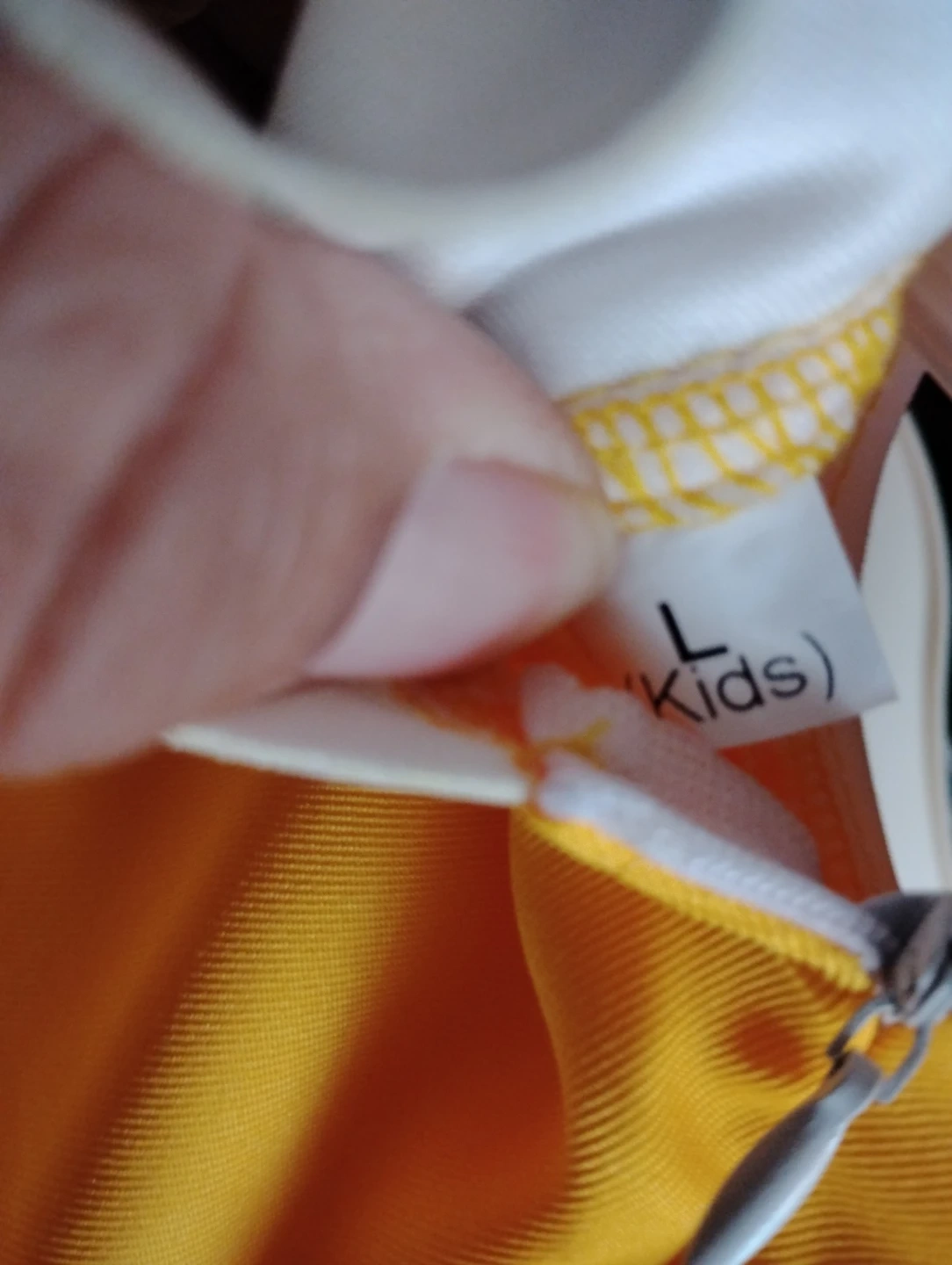 Daisy- Yellow dress with orange accents and ruffled trim. Features a flower detail on the chest. Size L for kids.